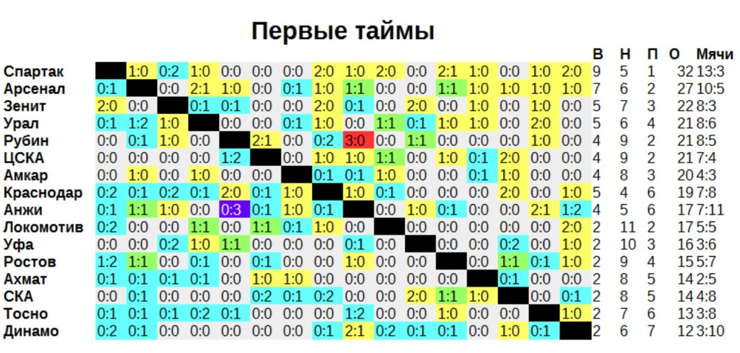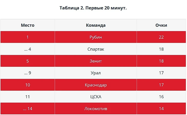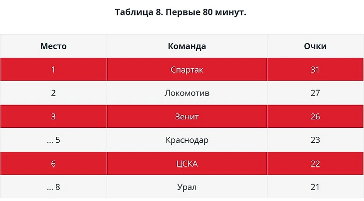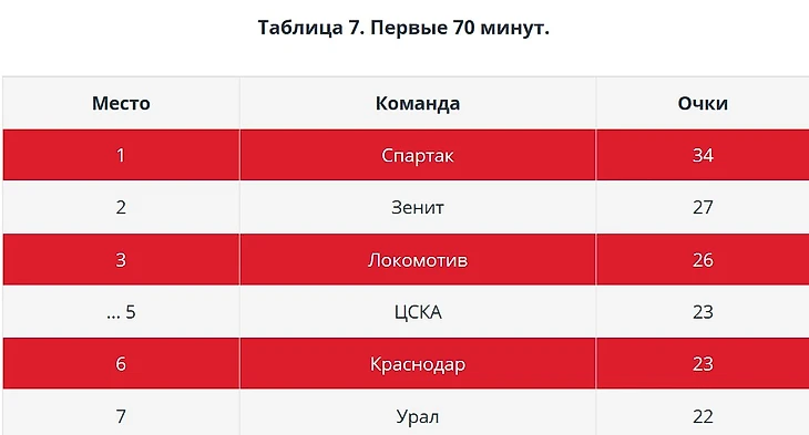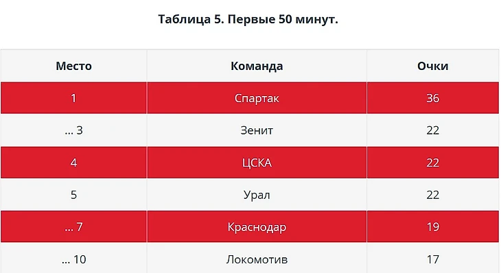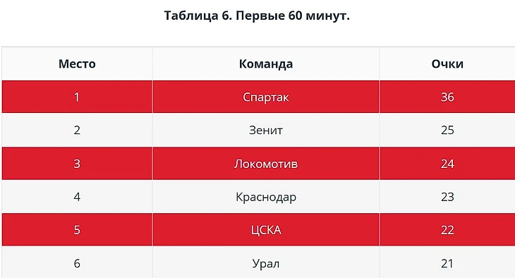 А вот во вторых таймах «Спартак» находится в зоне стыковых матчей. Удивительно, кстати, что схожая проблема у «Арсенала».