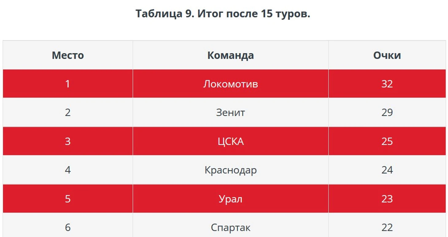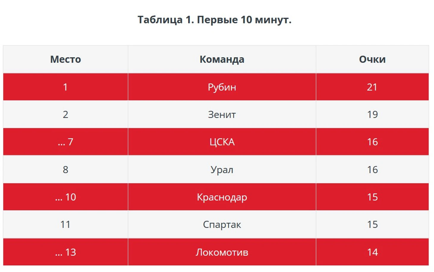 Таблица после 75 минут плачевна не только для «Спартака», но и для «Рубина».