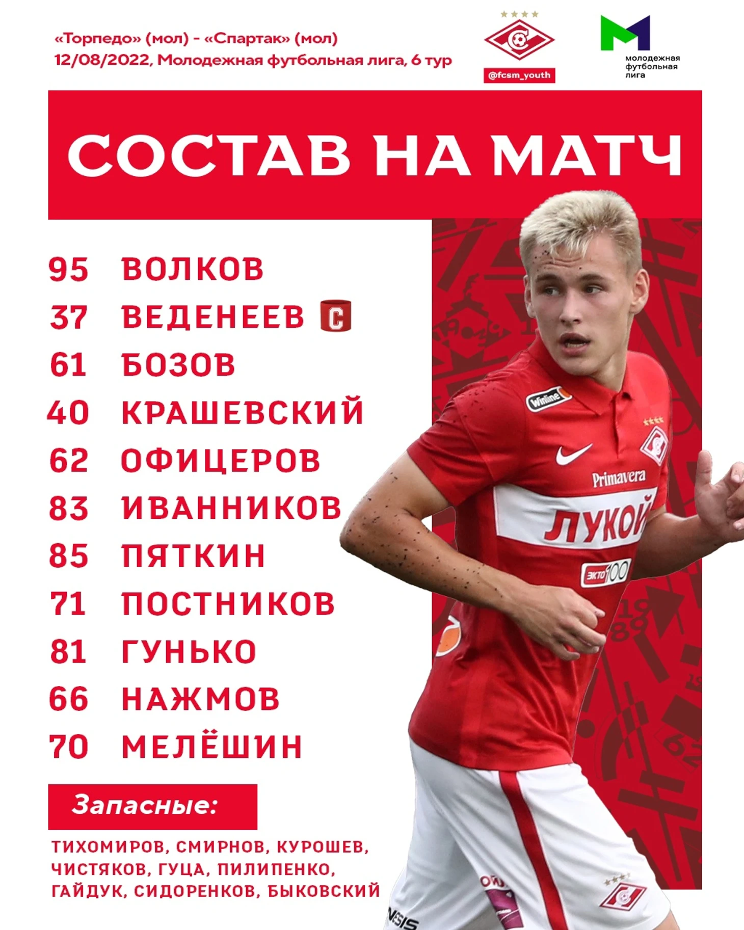 «Торпедо» (мол.) — «Спартак» (мол.) — 2:5 (2:1)
