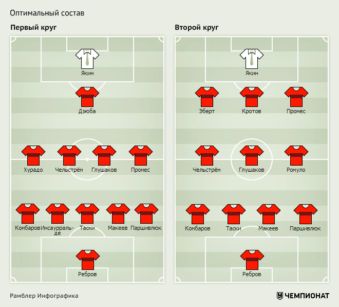 Полтора десятка сочетаний испробовал в центре обороны за 30 туров Якин, да так и не нашёл оптимального. Наибольшим расположением Мистера пользовалась пара Таски – Макеев (6 матчей) и тройка Макеев – Таски – Инсаурральде (5). При такой текучке на стратегически важном участке поля о надёжности обороны, наверное, не могло быть и речи. Даже «Уфа», «Терек» и «Кубань» пропустили в свои ворота меньше мячей, чем «Спартак» (42)! О тех командах, которые ещё недавно слыли прямыми конкурентами красно-белых, я лучше промолчу. К чему лишний раз бередить душевные раны поклонников команды?