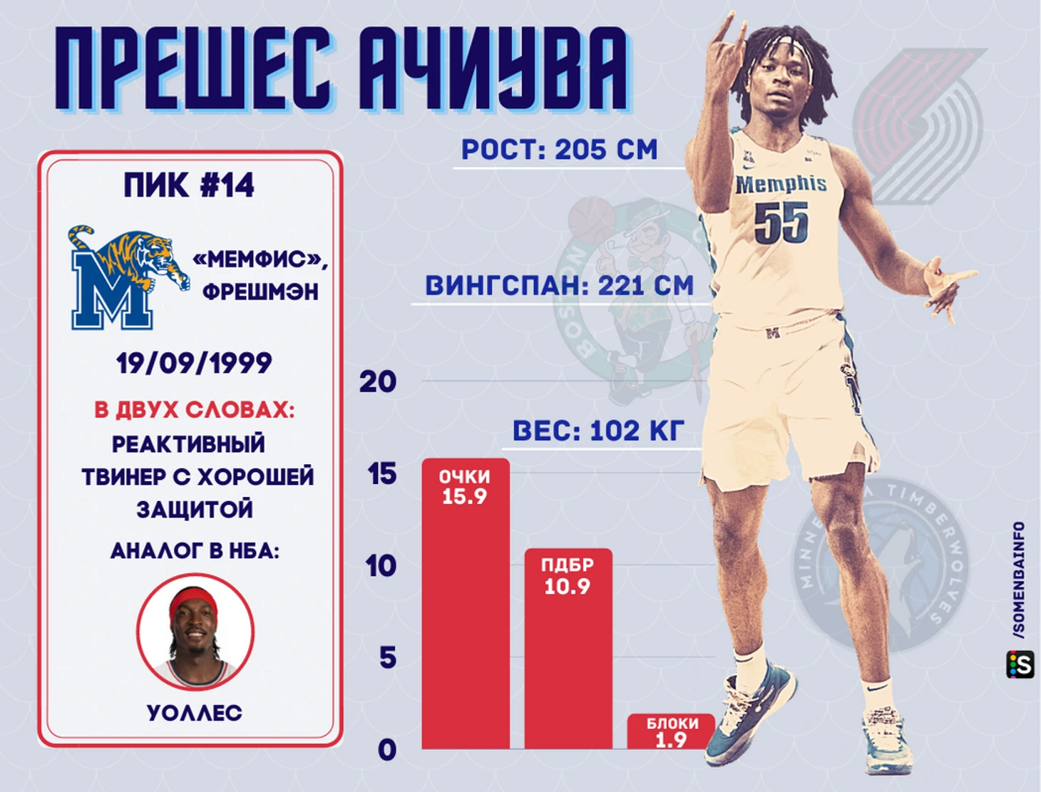 На топ-10 по таланту Ачиува очевидно не тянет, и выше 13-ого пика почти не котируется — тем более Прешесу уже 21, хоть он и фрешмэн.