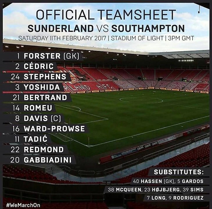 Снова в старте Габбьядини, вратарь Ассен впервые в составе, но в запасе. Хотя я бы дал ему шанс. С кем еще, если не с Сандерлендом?