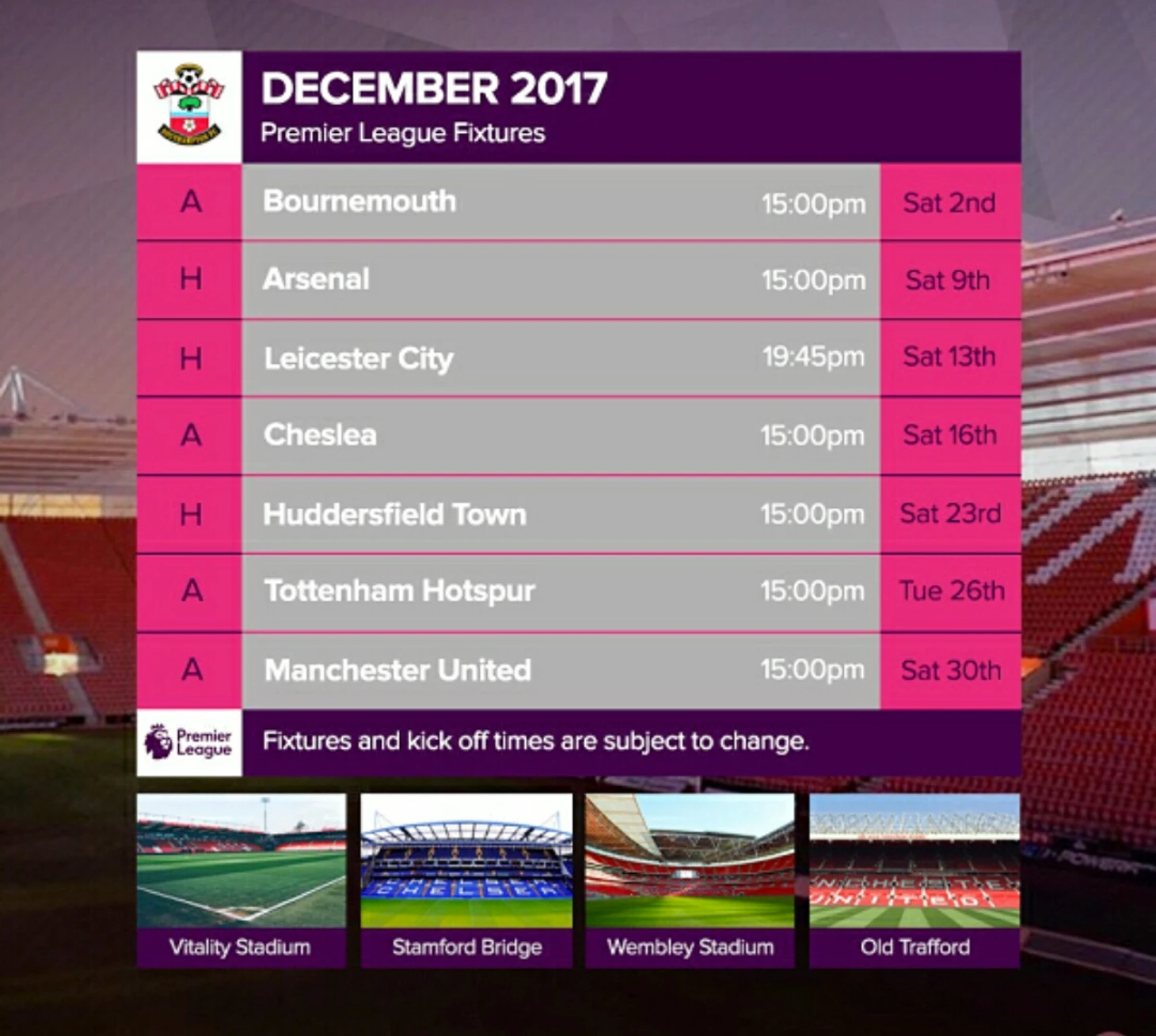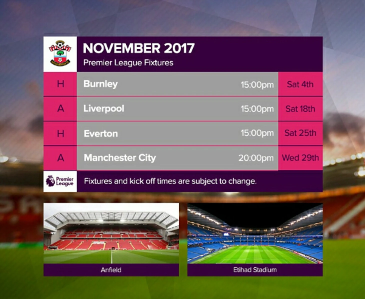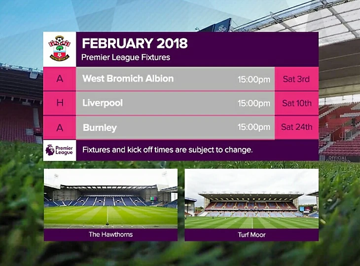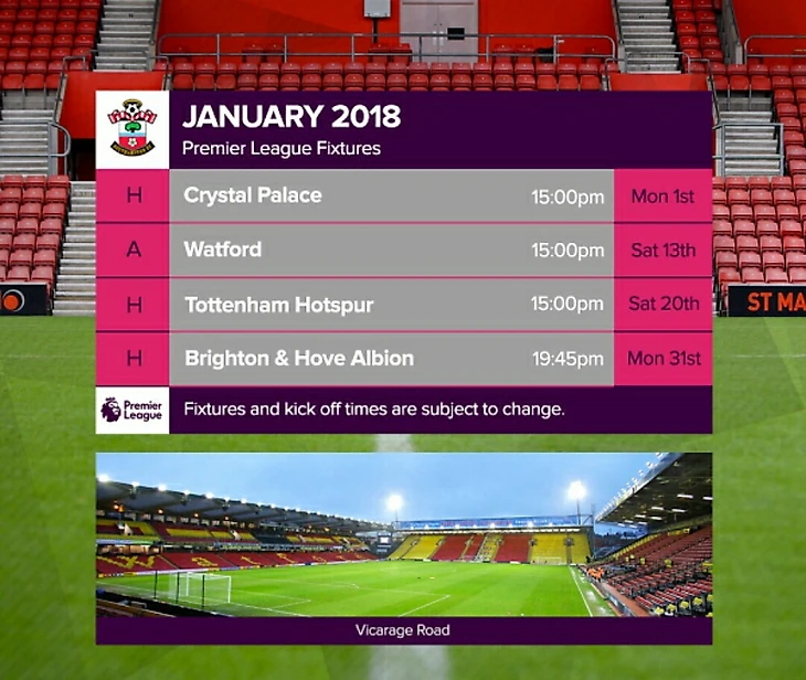 Вот полный календарь Саутгемптона на сезон 17/18 с разбивкой по месяцам.
