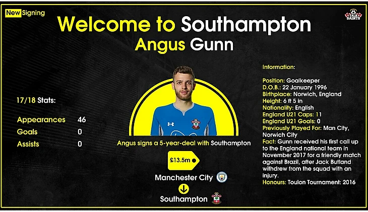 Слухи о трансфере Агнуса Ганна из Манчестер Сити ходили давно, и вот вчера они подтвердились. Саутгемптон объявил о трансфере молодого вратаря. Цена сделки 13,5 миллиона фунтов.