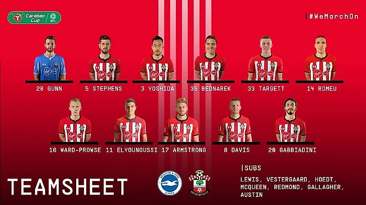 Сегодня Саутгемптон начинает свой путь в Карабао Кубке (Кубке Лиги) выездным матчем против Брайтона.