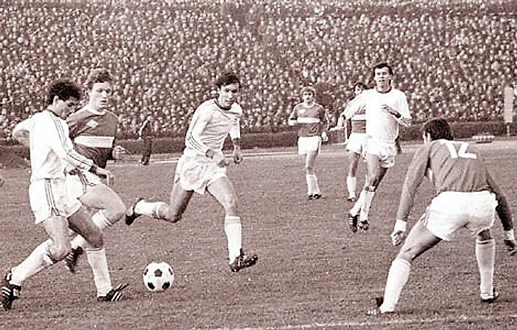 1983г. Днепр - Спартак (4:2). Завершающий Аккорд Сезона!. Слева-напр: О.ТАРАН- О.ПРОТАСОВ- Г.ЛИТОВЧЕНКО!.. В кадр, Символично, попали эти Трое Знаковых Героя, как того Чемпионского Сезона, так и последующих Побед Днепра, которых в тот вечер было не под силу остановить ни Спартаку, ни, наверное, никакому другому, даже самому именитому клубу! (и как не отметить, что все трое - были уроженцами Днепропетровской области!..)