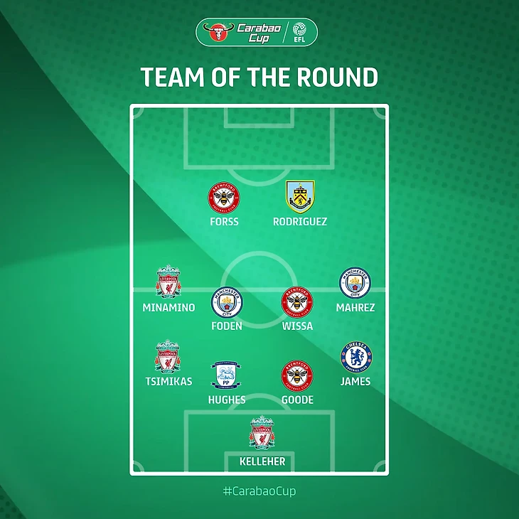Каоимхин Келлехер, Костас Цимикас и Такуми Минамино были выбраны в команду Кубка Карабао по итогам третьего раунда.