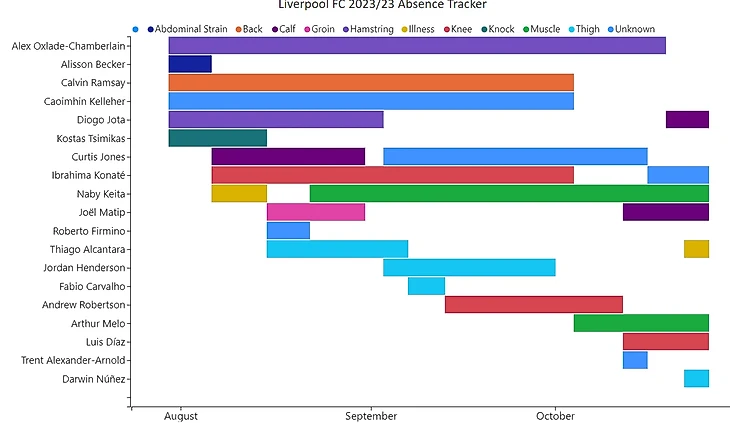 Пострадало 19 игроков. Травматичность «Ливерпуля» впервые изобразили на удобном графике