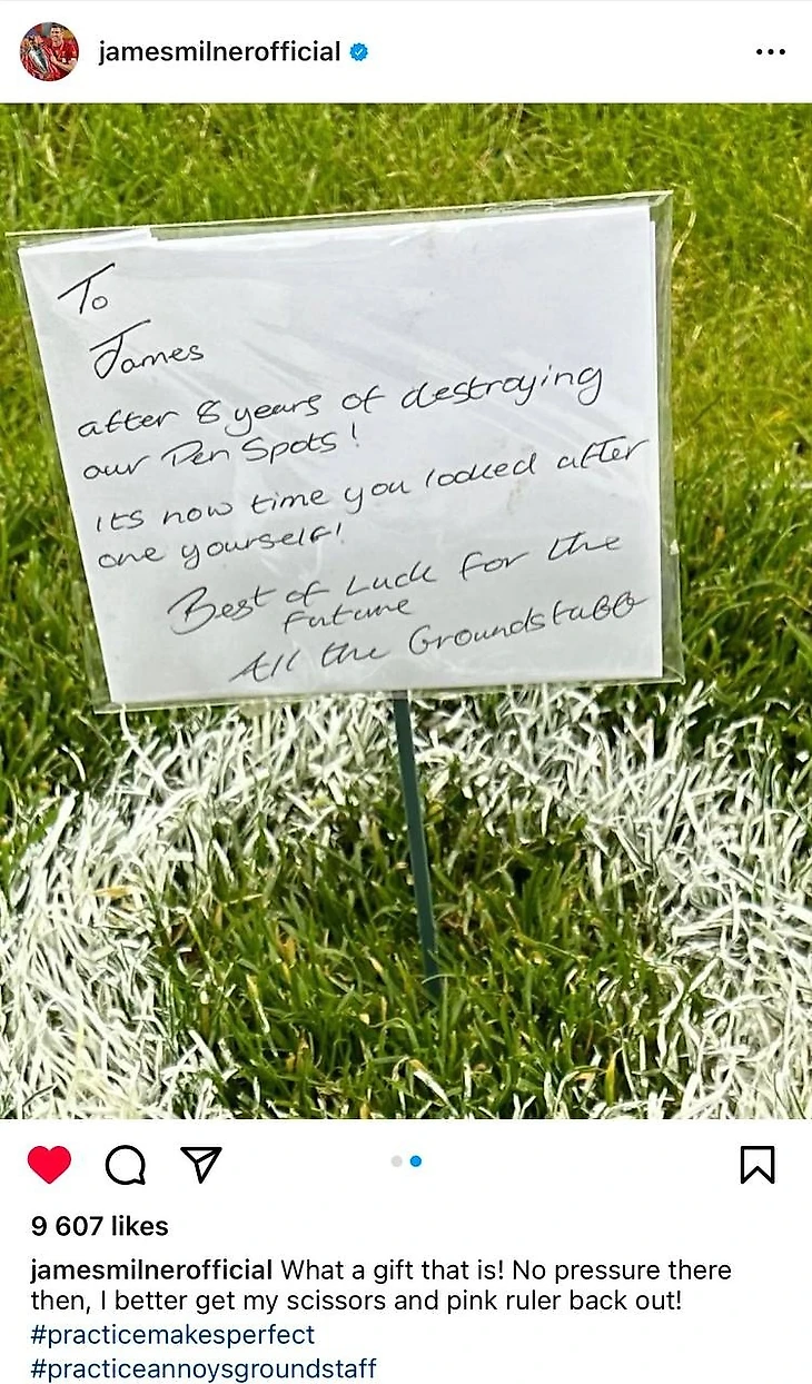 Команда, обслуживающая поле на «Энфилде», преподнесла Джеймсу Милнеру особый прощальный подарок перед его последней игрой за клуб.
