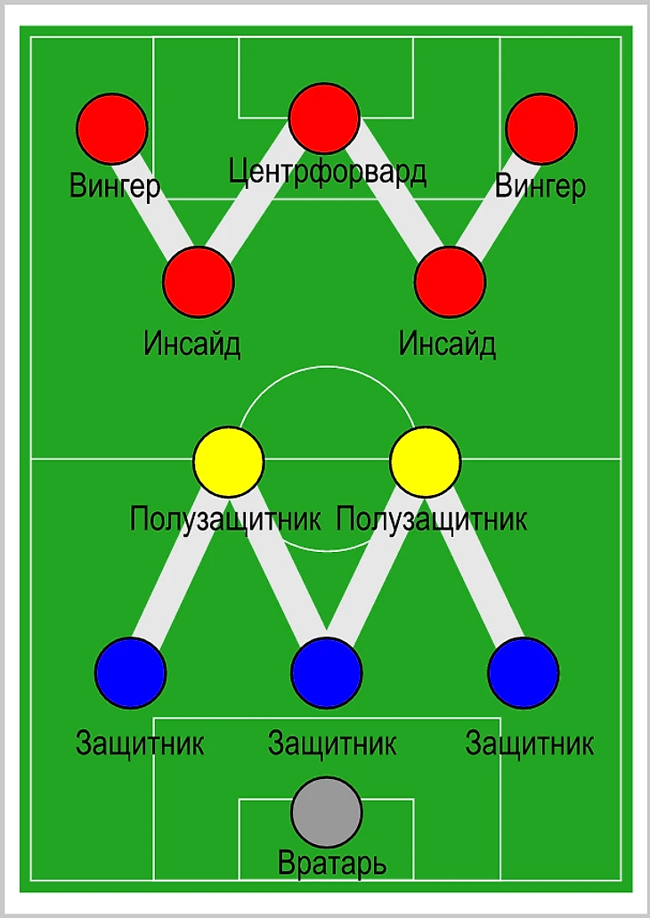 _Создатель: Герберт Чепмэн Использование: "Арсенал" Время: 1925 -1970-е Схема: 3-2-2-3 Комментарий: В основном так действовали английские команды. Впоследствии система стала известна в Европе. _