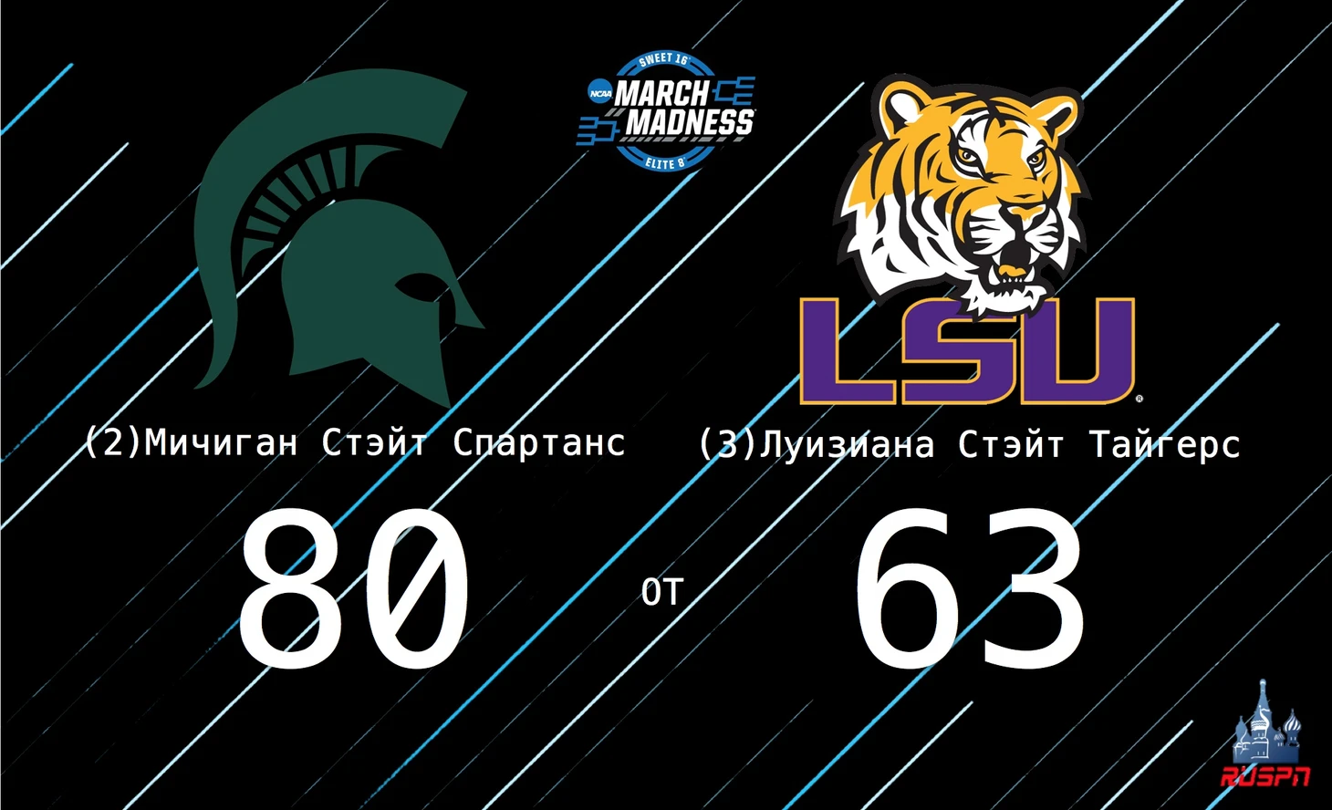 В параллельной игре «Мичиган Стэйт Спартанс» довольно обыденным образом обыграли «Луизиану Стэйт Тайгерс». Форма «Спартанс» еще раз мне доказывает, что команда была достойна №1 места в посеве.