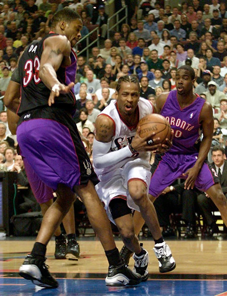Далее случилась, пожалуй, лучшая серия того плей-офф: «Филадельфия» замесилась в семи играх с «Торонто». Здесь было все: очная встреча двух главных на тот момент «новых джорданов», каваи, процессы, геймвиннеры и взаимные унижения, а также Классические Баскетбольные Качели™ – то есть все, ради чего мы и смотрим плей-офф. На проигрыш во втором матче «Торонто» ответили яростным адом третьего, где Картер буквально вытер ноги об Айверсона, настреляв немыслимые 50 очков (с 9 точными трехами из 13). Дальше было еще круче.