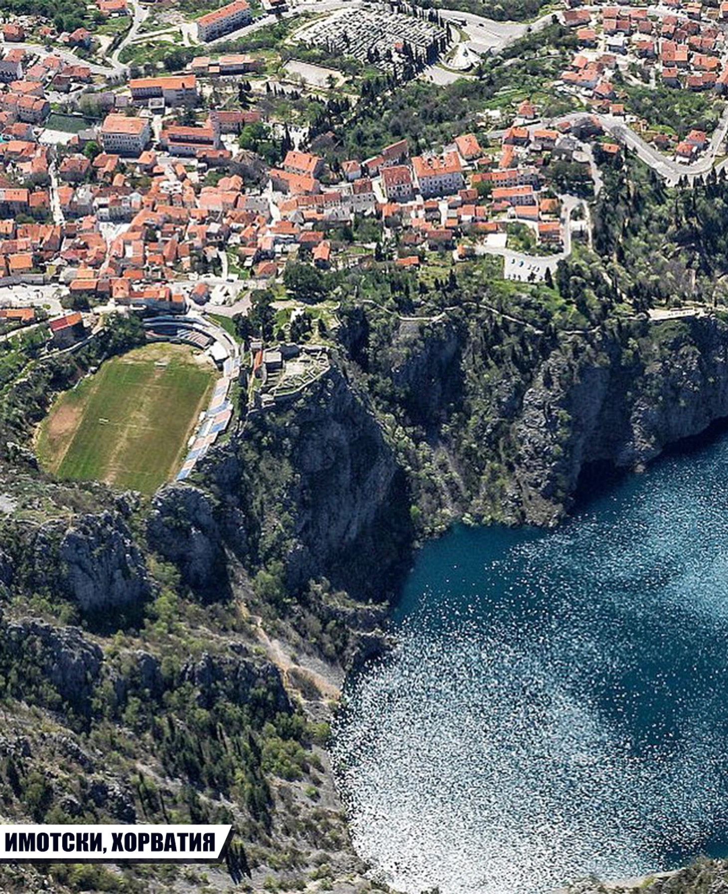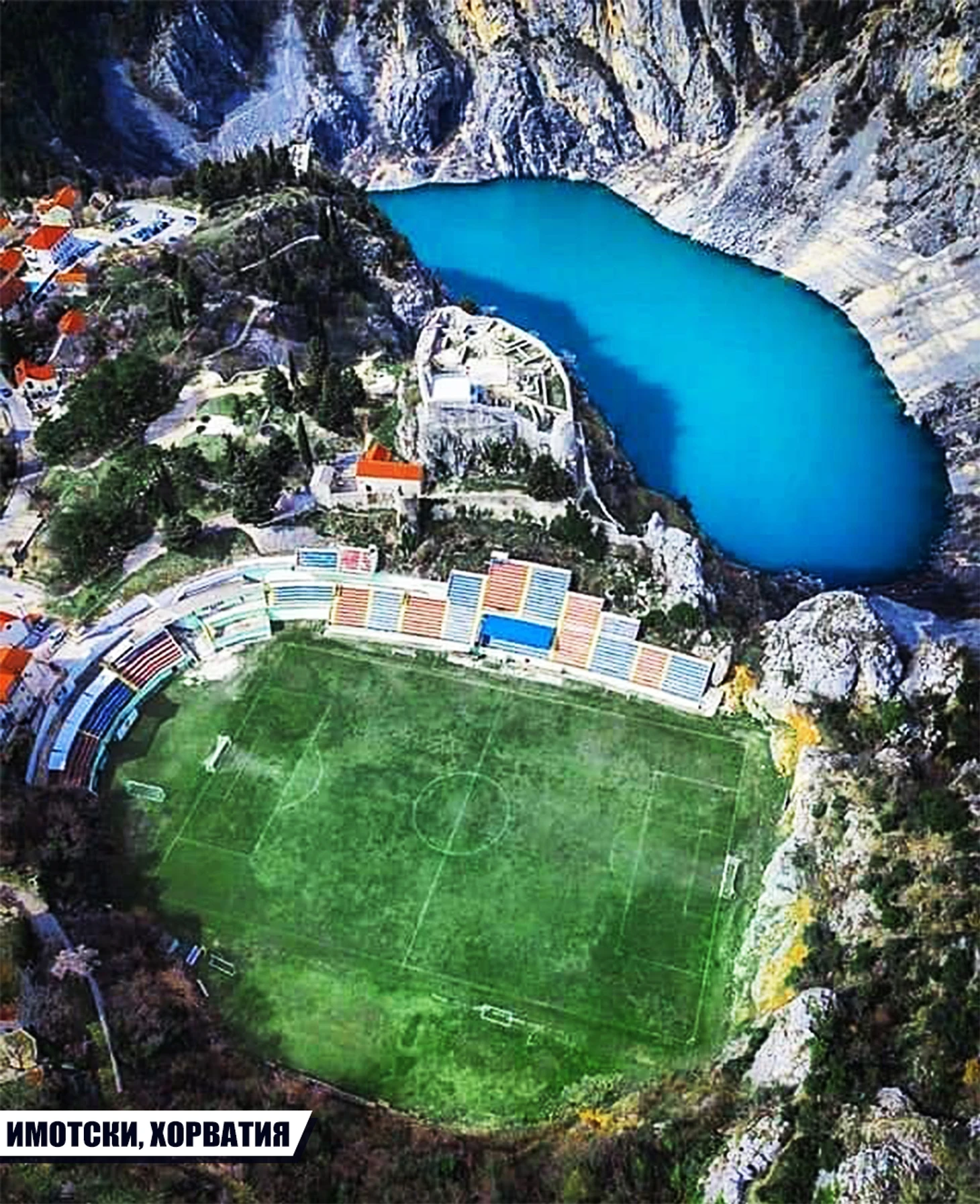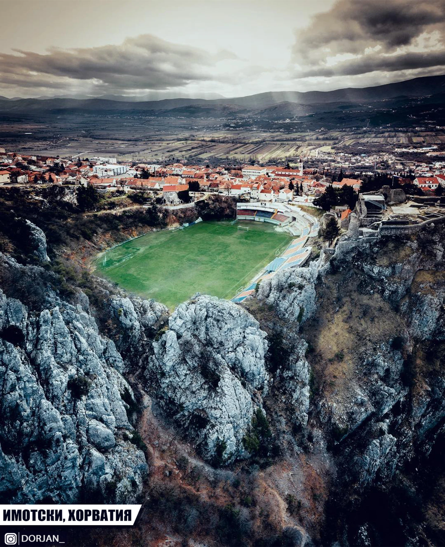 Закроем список настоящим стадионом с трибунами. «Госпин Долац», который расположен в хорватском городе Имотски. Был построен в 1989 году, а его вместимость составляет 4000 зрительских мест. Является домашним стадион ФК «Имотски».