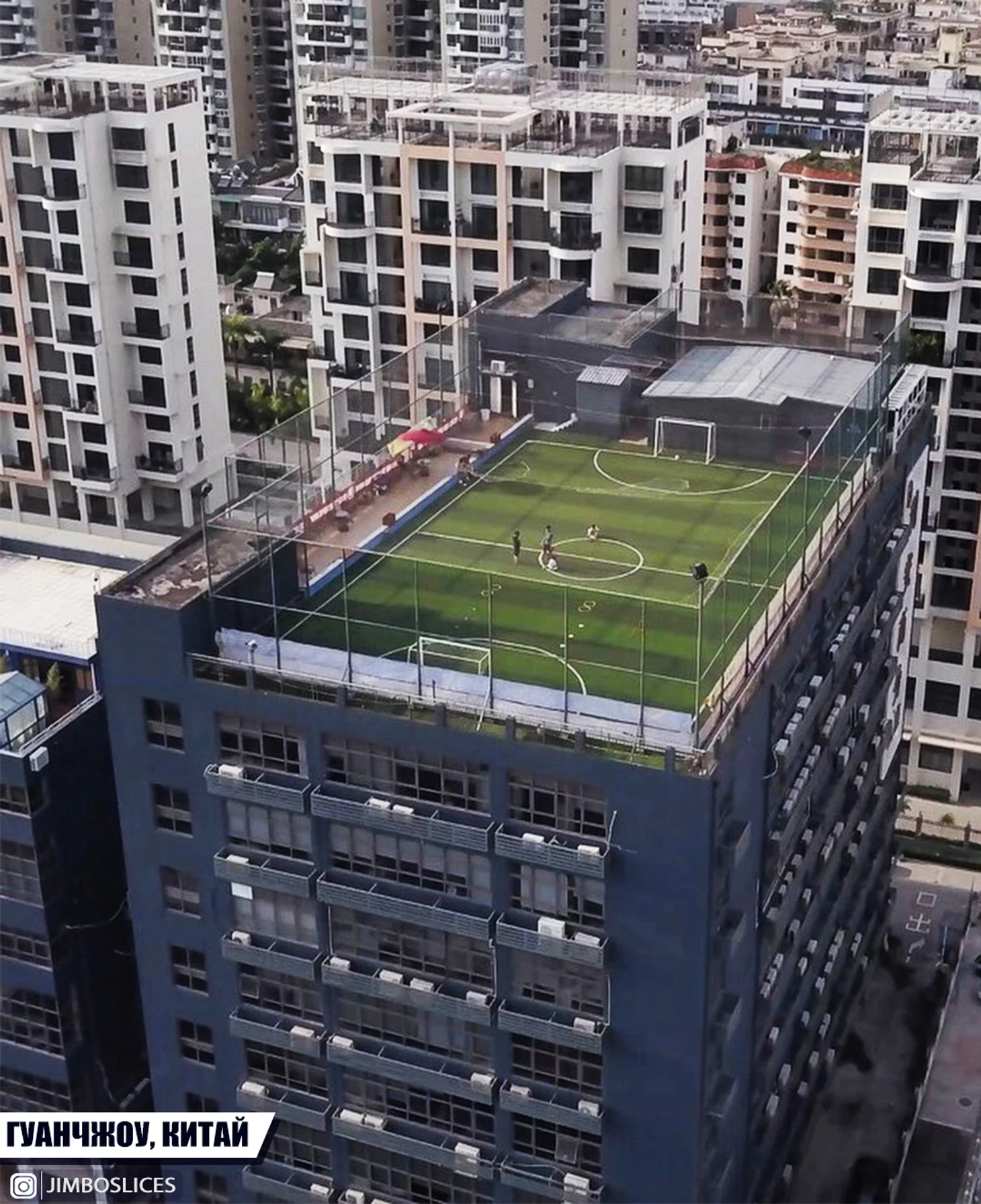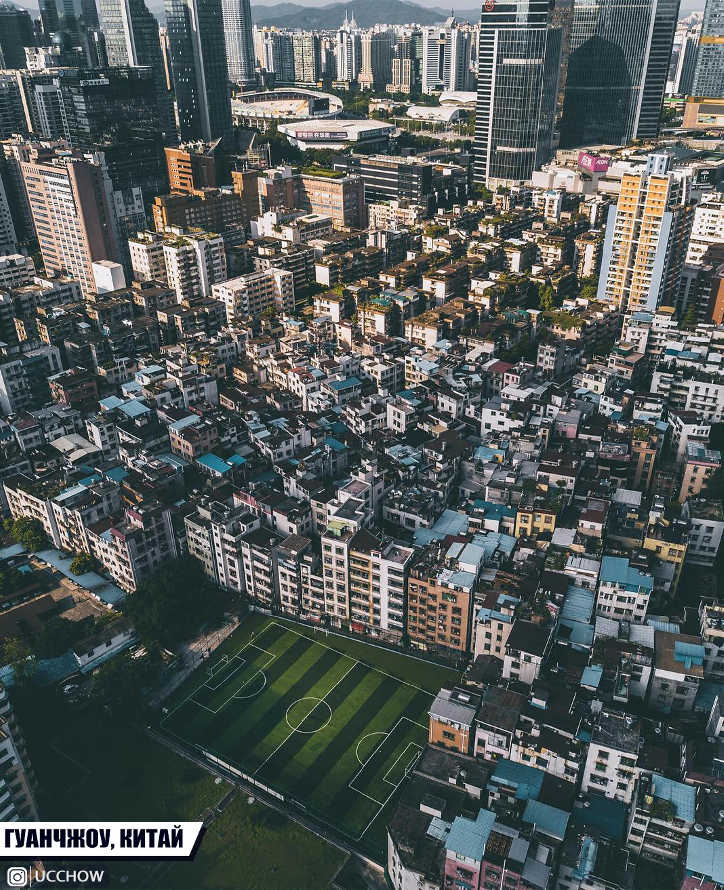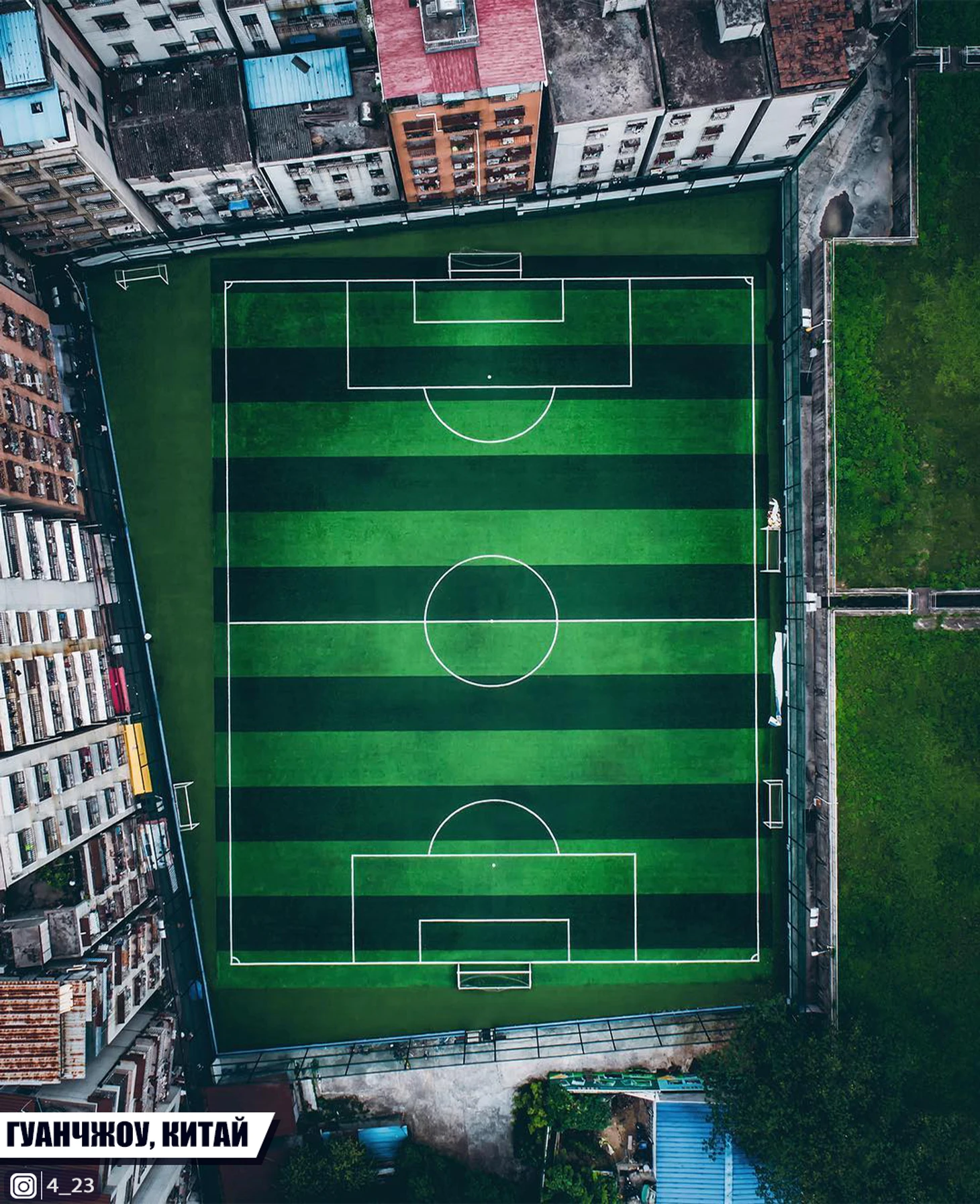 О расположении футбольных полей Китая можно писать отдельную статью. Плотность населения этой страны в 17 раз больше, чем у России. Вероятно, что это одна из причин почему у них площадки для футбола создают в столь необычных локациях. Вот несколько примеров из третьего по населению китайского города Гуанчжоу: