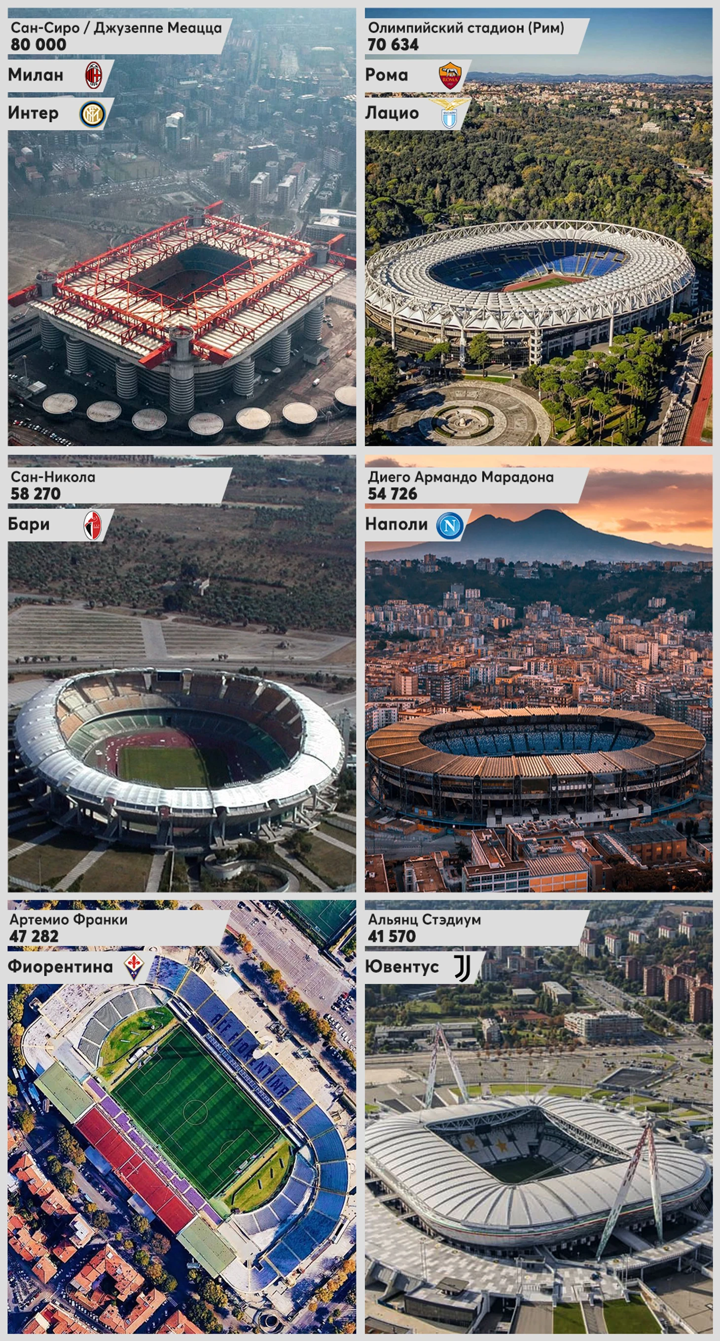 Но это позволяет стадиону из Турина занять лишь шестое место среди самых крупных футбольных стадионов Италии.