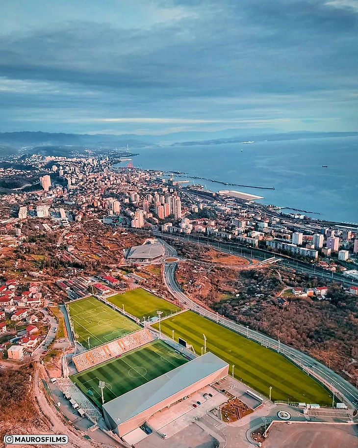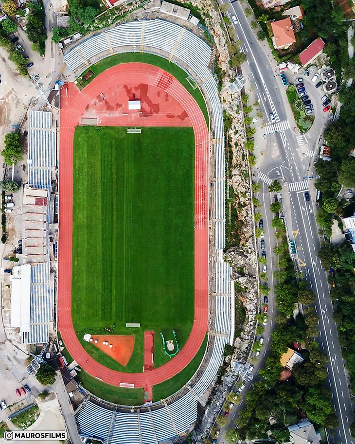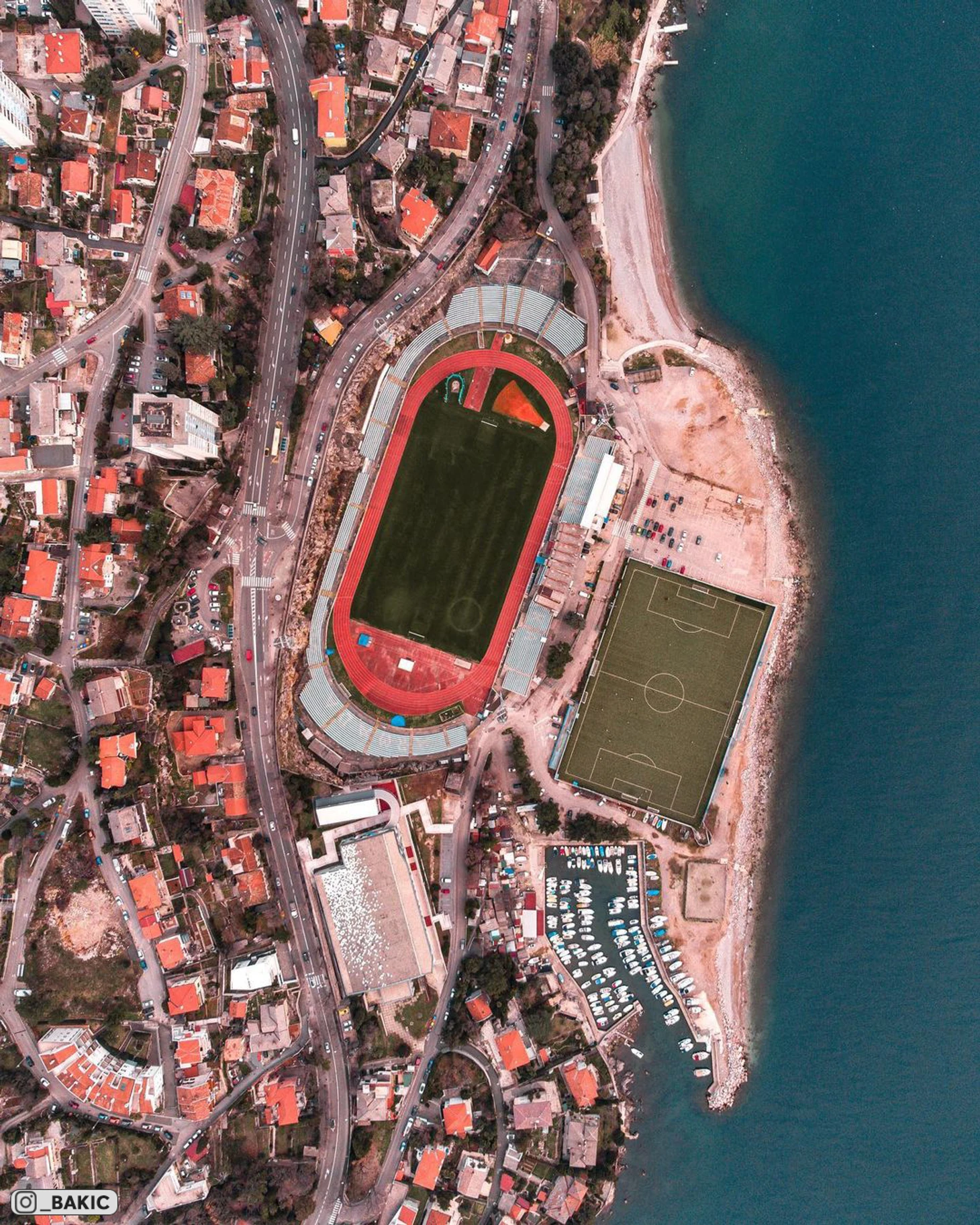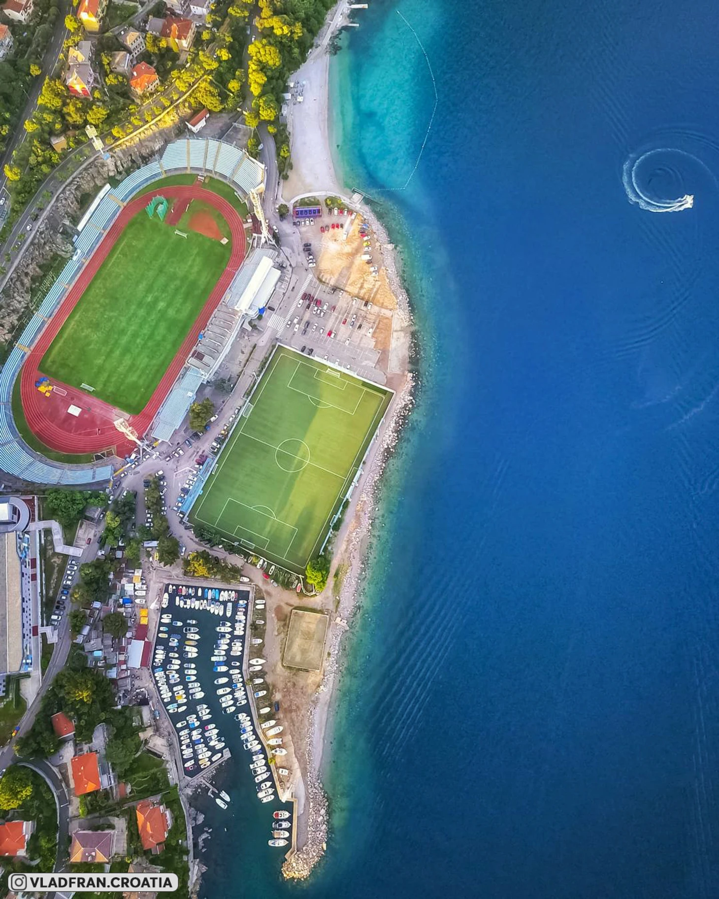 Хорватский стадион «Кантрида». Попадал в списки самых необычных и самых красивых стадионов мира (фото с дронов)