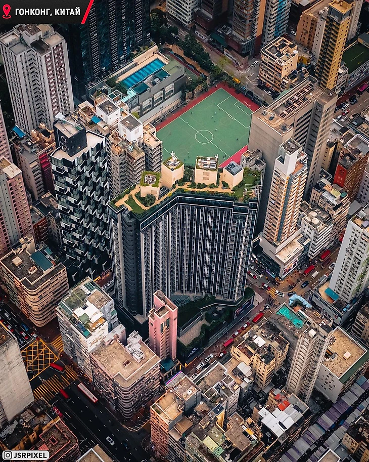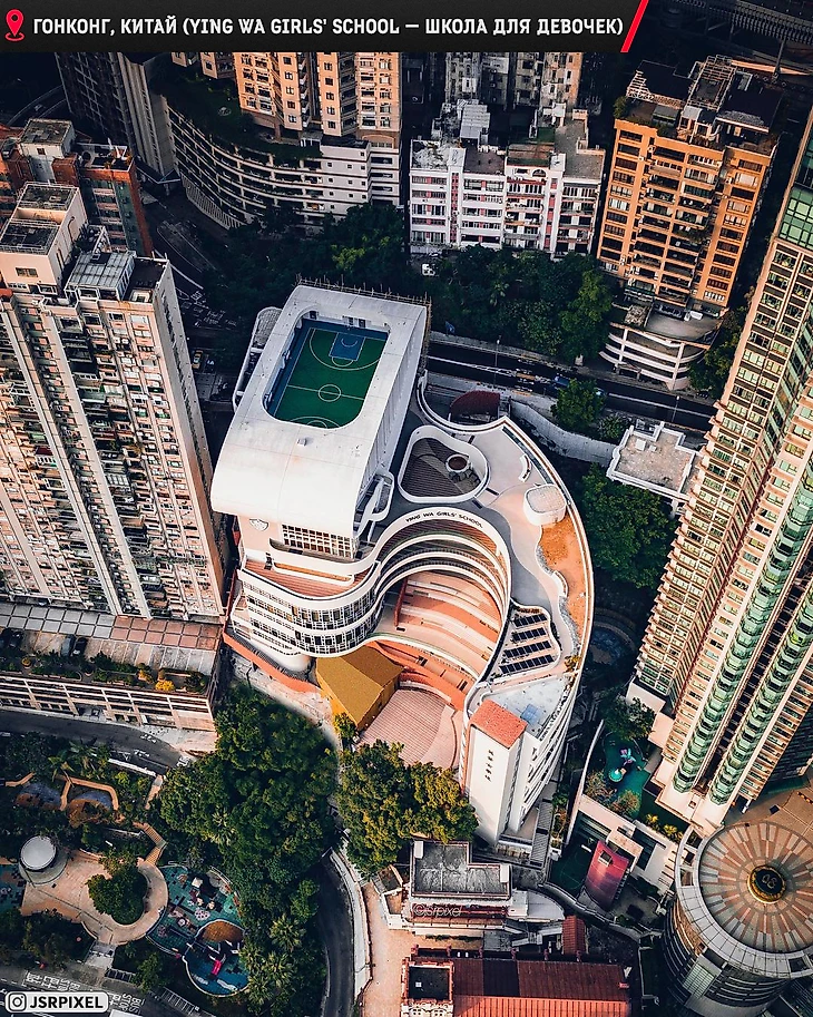Небольшое отклонение от футбола, но вы должны это увидеть. Баскетбольная площадка на крыше школы для девочек. Китай в своём репертуаре