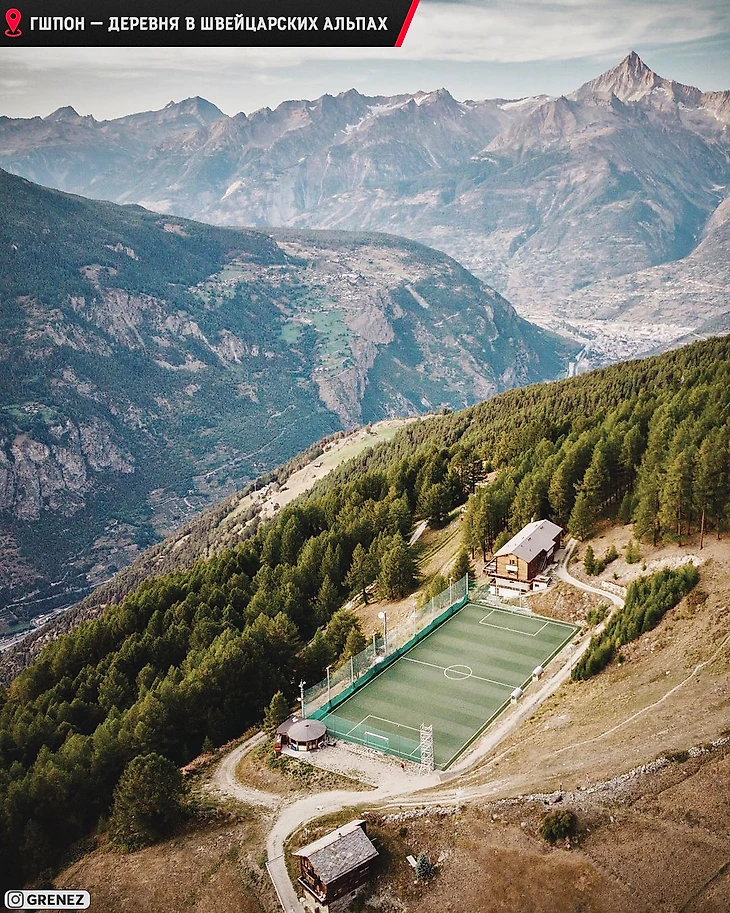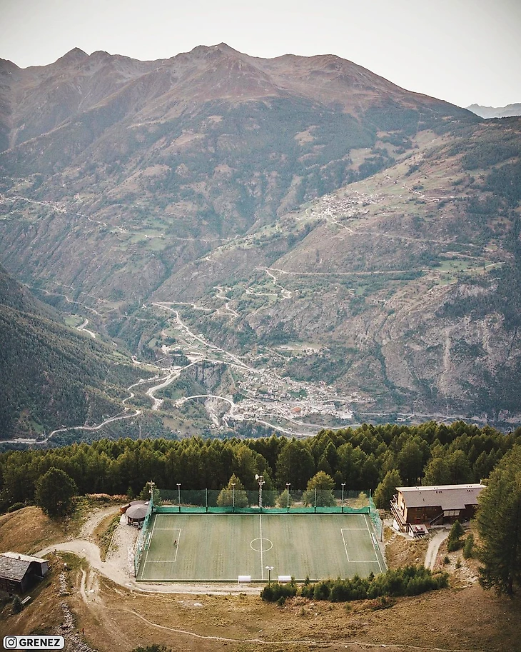 Это самый высокий стадион во всей Европе и он расположен на высоте 2000 метров. Футболистов и зрителей доставляют на это поле на подъёмнике.