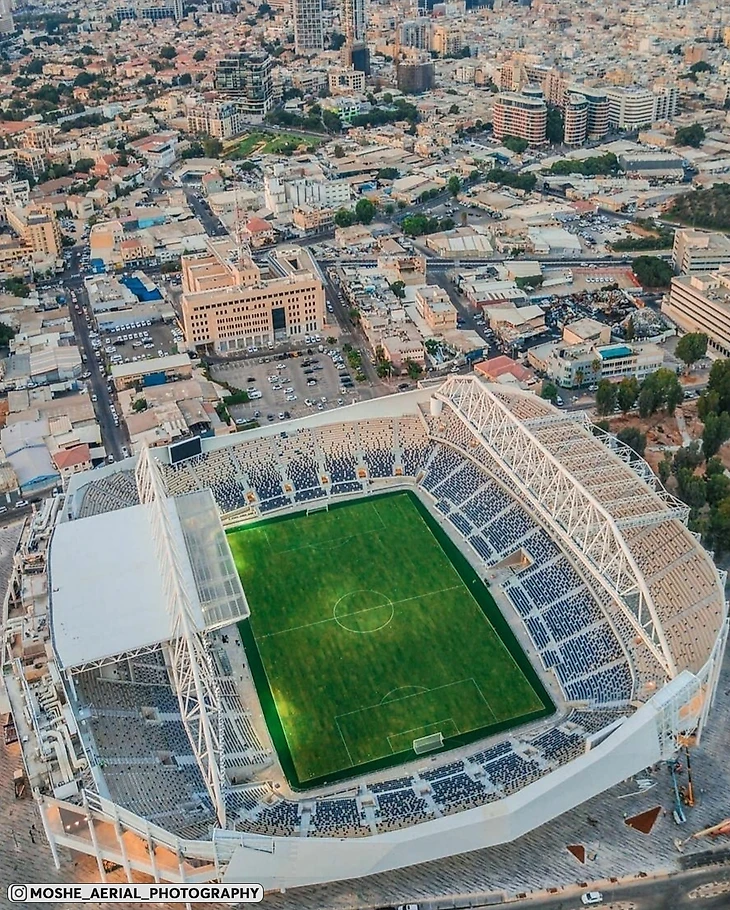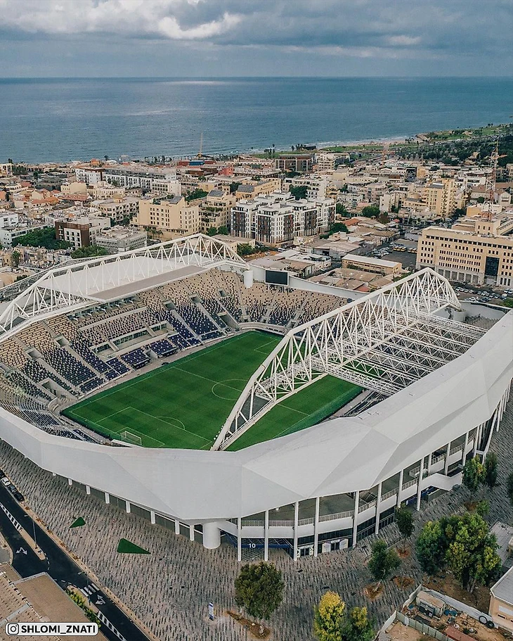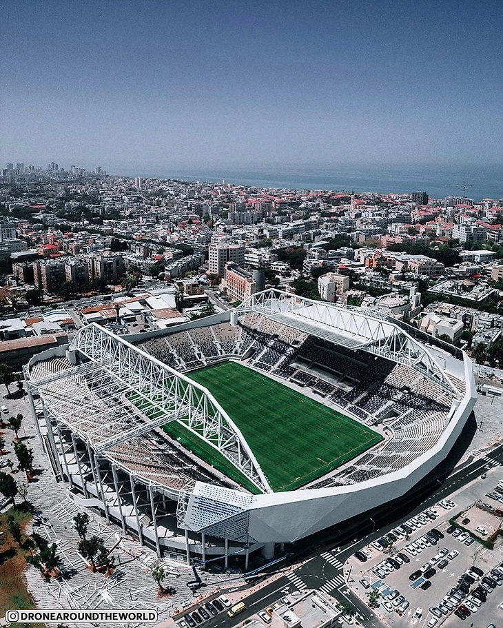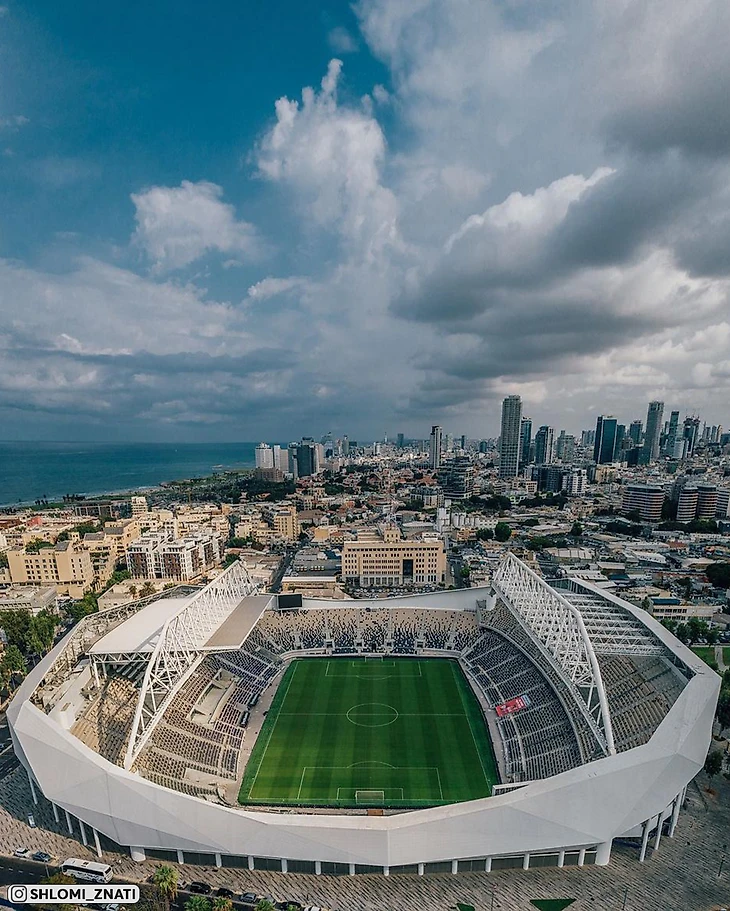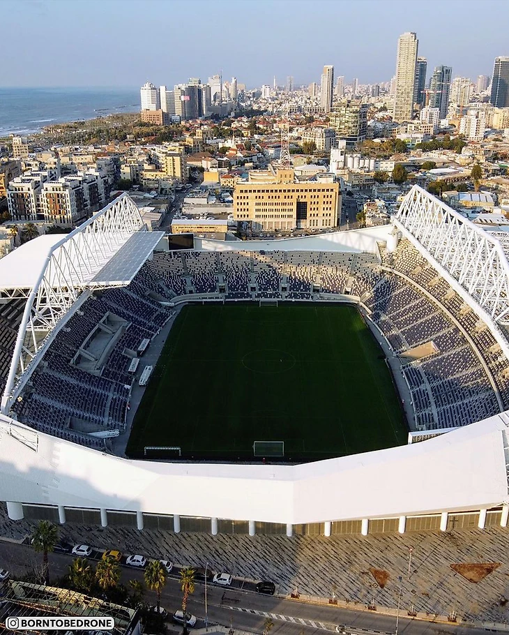 Стадион «Блумфилд» — один из двух израильских стадионов, на которых разрешено проводить еврокубки (фото с дронов)