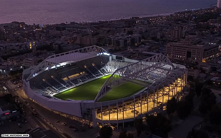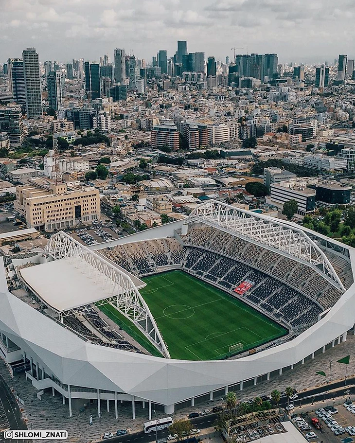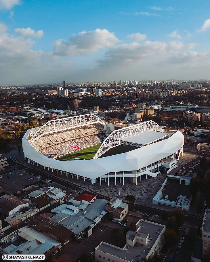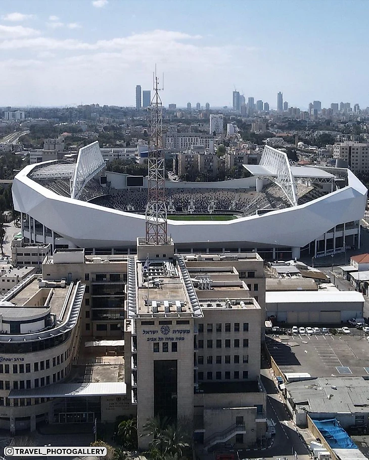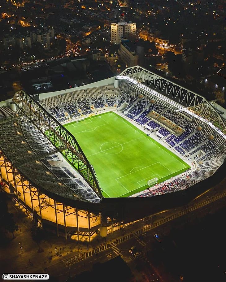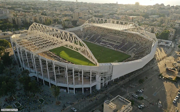 Стадион «Блумфилд» — один из двух израильских стадионов, на которых разрешено проводить еврокубки (фото с дронов)