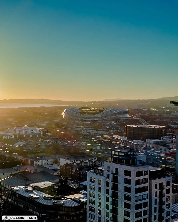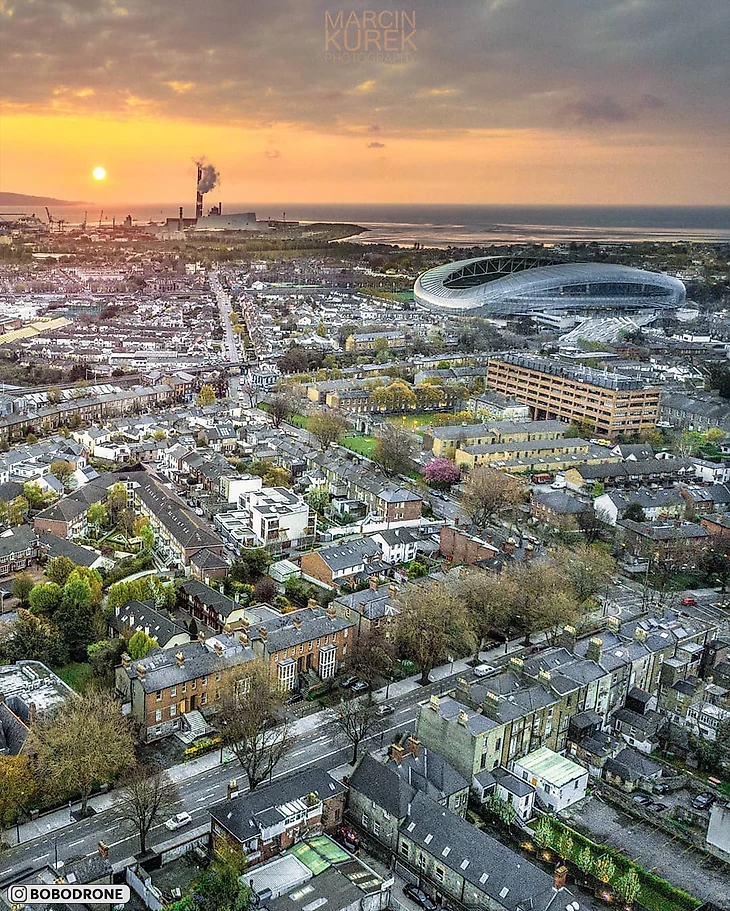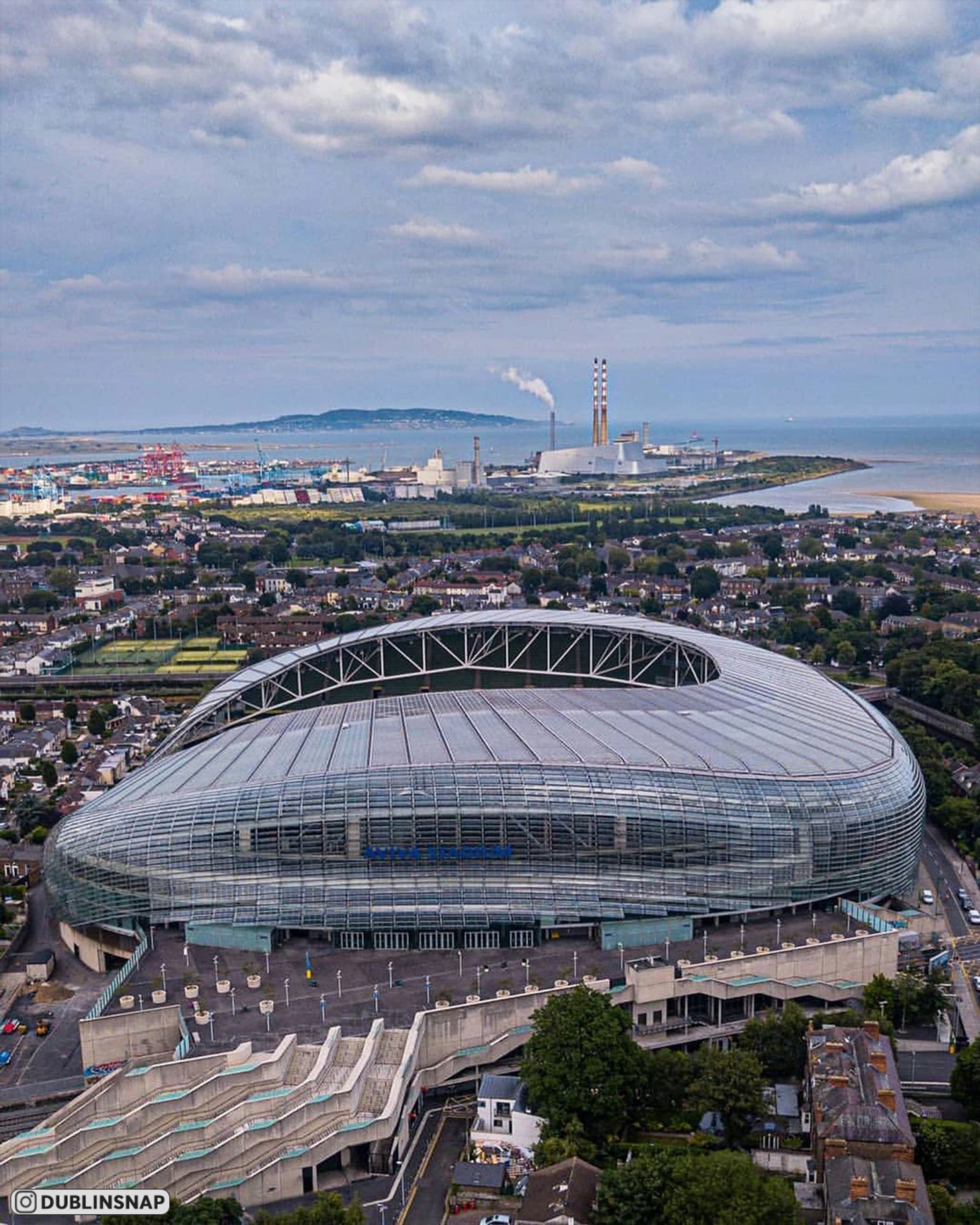 Во-первых, это красиво. Дублинский стадион «Авива» с высоты выглядит будто стеклянный (фото с дронов)