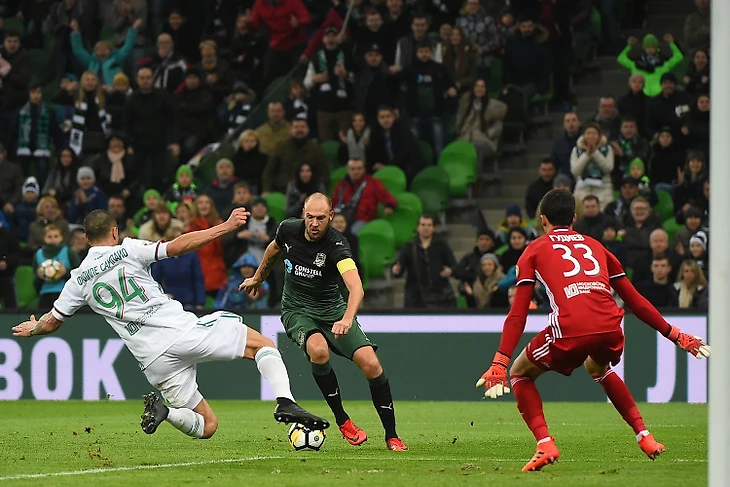 Всю симметричность противостояния игроков нарушает Андреас Гранквист. Это был не лучший его матч, но его проход перед вторым голом «Краснодара» был восхитителен (надо смотреть его с самого начала - все повторы этого гола начинались, в лучшем случае, с середины забега).