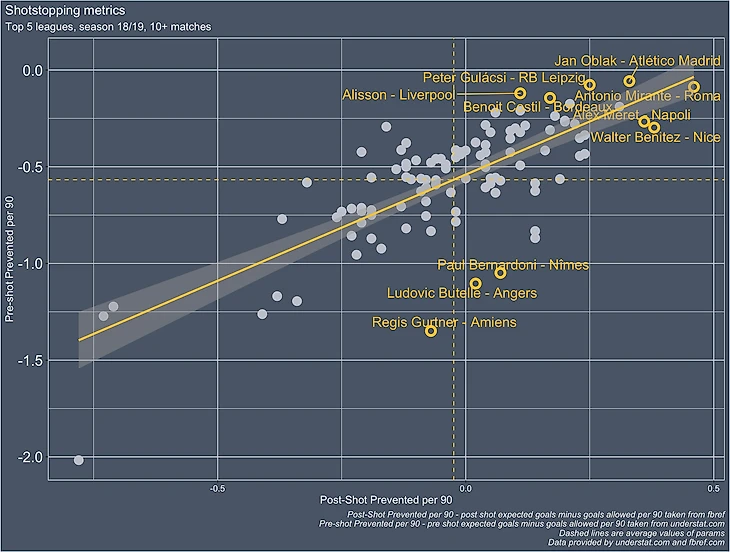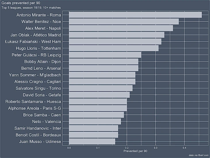Единственный недостаток в том, что данные PSxG, которые используются для расчета "post-shot goals prevented", крайне ограничены в публичном доступе. Есть только последние пара сезонов на сайте fbref.com.