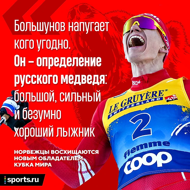 • Ханс Кристер Холунн: «Большунов – такой парень, что может напугать кого угодно. Он – определение русского медведя: большой, сильный и безумно хороший лыжник».