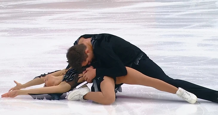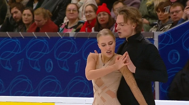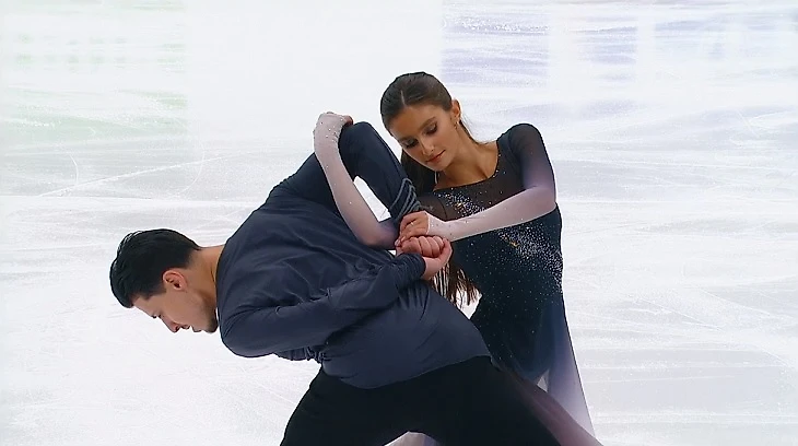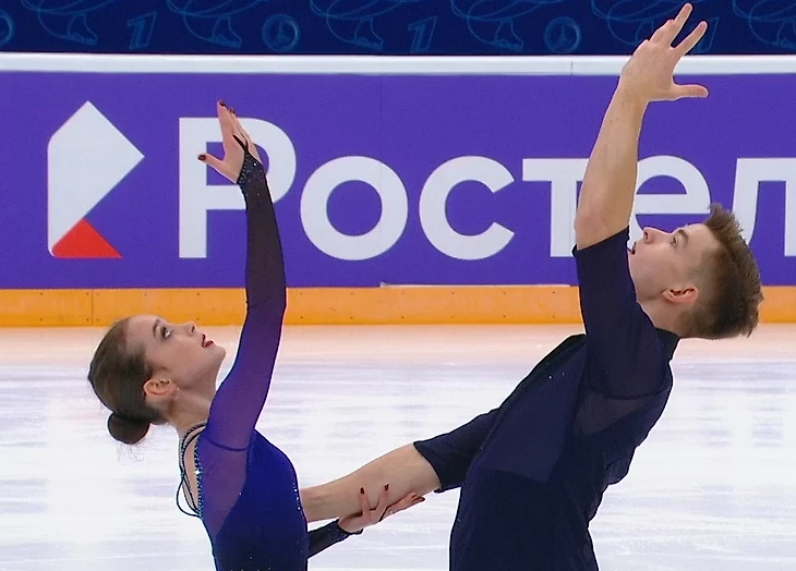 Вслед за самыми молодыми выходят самые опытные. На этих прокатах Елизавета Худайбердиева и Егор Базин - первая пара. И, наверное, самая стильная.
