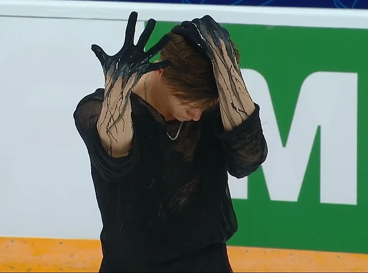 Петр Гуменник закрывал первый день прокатов - упал с четверного лутца, зато чисто прыгнул четверной риттбергер-тройной тулуп и тройной аксель! Сильная программа, но ни одного идеально чистого проката у наших парней сегодня.