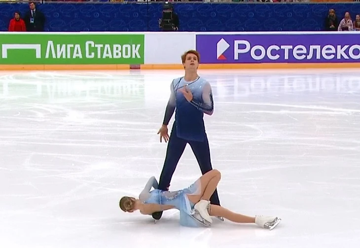 У Ясмины Кадыровой и Валерия Колесова прокат получился не такой блестящий, как их костюмы - оба упали по разу (она - с выброса, он - с прыжка).