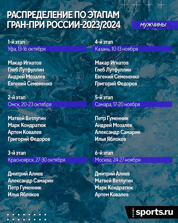 • У мужчин составы четко по спискам Минспорта – все получили места на Гран-при.