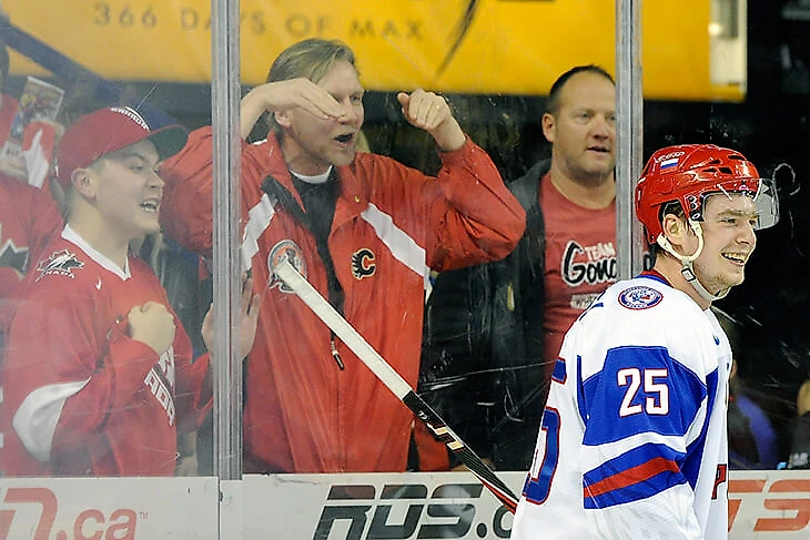 После матча Кузнецову вручали приз лучшего игрока матча – и канадский зал ему спокойно аплодировал. Евгений ответил залу по-своему: