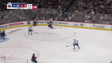 И когда Хедман получил шайбу, на нем уже сидел Валера. У Хедмана не было другого варианта, как просто ткнуть по борту – и в этот момент все, кто мог принять этот пас, были под давлением. Простой выброс из зоны, который в средней зоне подобрал защитник «Колорадо».