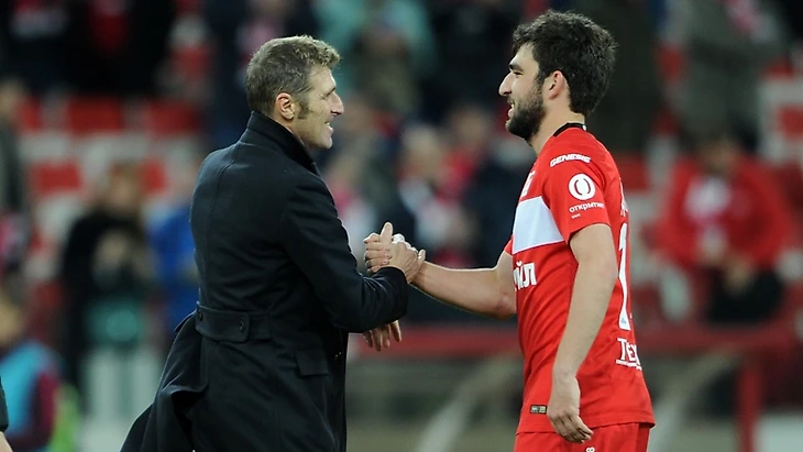 Справа «сыграет» еще один центральный защитник, но с более четкими навыками игры на краю, человек который вернул московскому «Спартаку» чемпионское звание в России, Массимо Каррера. Одно это достижение позволяет включить в нашу сборную Массимо. Дело в том, что та победа «Спартака» целиком тренерская, целиком. Уровень игроков московского клуба, к которому я отношусь с любовью, и, откровенно скажу, не очень корректное руководство клубом боссами, не помешали итальянцу совершить (как назвать?) подвиг.