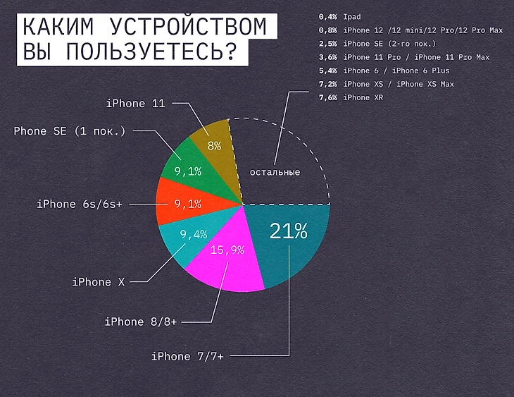 На картинке выше видно, что по большей части затруднения испытывают владельцы iPhone 7 / iPhone 7 Plus, iPhone 8 / iPhone 8 Plus — что видится логичным, потому как железо в этих устройствах слабее. А вот то, что основные сложности на относительно свежем iPhone 11 — загадка. Пытаемся разгадать.