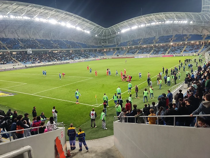 Все изменил гол левого защитника Дилы - Вандерсона. Бразилец прошил ближнюю девятку ворот хозяев ударом с угла штрафной на 68 минуте. Это было первая попытка с начала вторых 45-ти минут от обеих команд. Именно этот момент изменил, но не игру, а атомосферу на стадионе. Через пару минут на поле выбежал парень, как мне показалось, не старше 17 лет. Добравшись до центра поля, он был настигнут стюардом. Перестав сопротивляться, как казалось, он направился под руку с сотрудником стадиона в сторону угла поля. Но проходя мимо мяча, вдруг вырвался и побежал с игровым снарядом в сторону ворот гостей, догоняемый все тем же стюардом и уже другим персоналом. Забавно было наблюдать, как защитник Дилы не давал ему пройти или нанести удар, возможно суеверие, что мяч не должен побывать в сетке. Парень добрался до штрафной, где плюхнулся на газон, и был настигнут персоналом, который в этот раз обошелся более жестко.