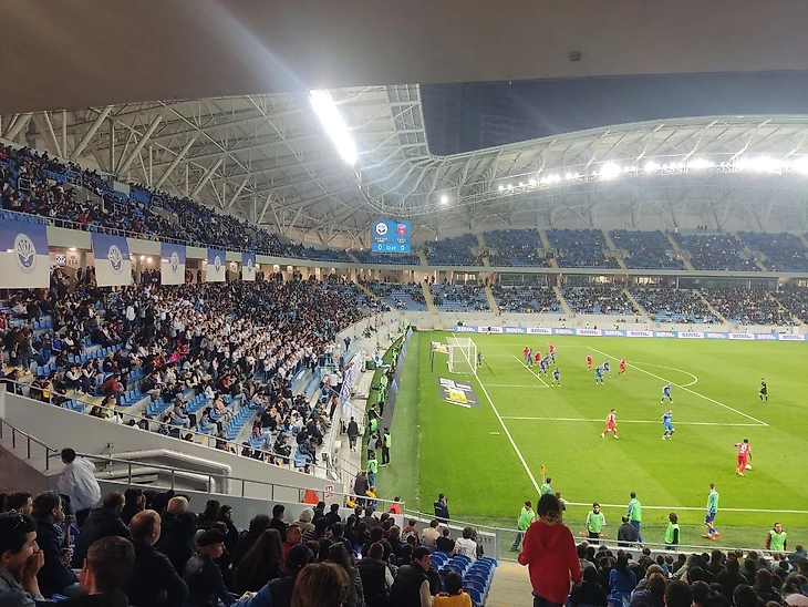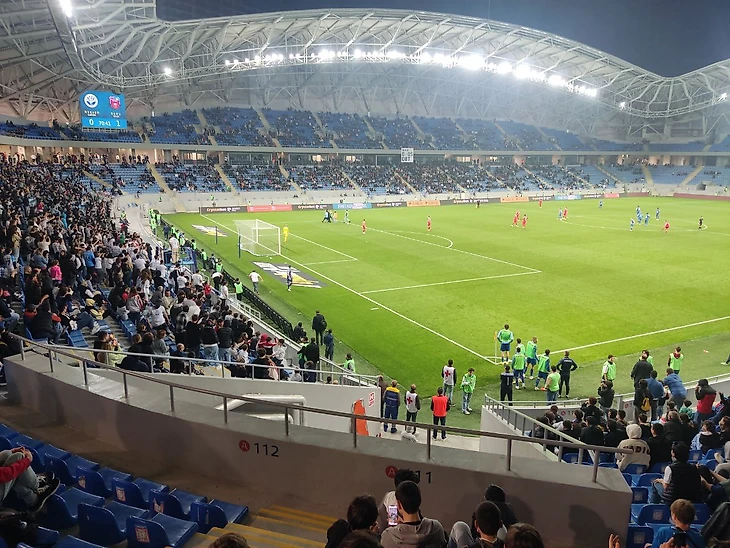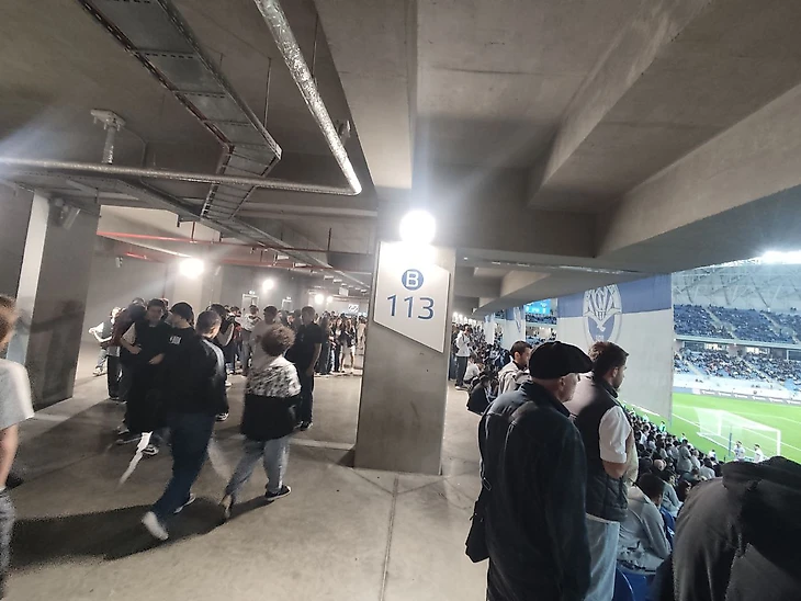 За весь первый тайм я увидел только два удара по воротам, по одному от каждой из команд. Произошло это на 45+ минутах. Подобное не могло не сказаться на отсутствии внимания со стороны посетителей игры, особенно подростков. В прошлом я упоминал, что стадион удобен для перемещения между секторами, так как его можно по верху первого яруса обойти кругом. Но есть в этом и обратная сторона. Подростки 12-15 лет приходят на игры, как в ТЦ побродить и «праздно шататься»: группы по 20 человек могли просто начать бегать без причины. Последствия подобного, никем не котролируемого хаоса, дадут о себе знать во втором тайме.
