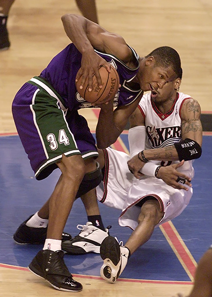 В шестом матче серии с «Филадельфией» Аллен Айверсон столкнулся со Скоттом Уильямсом – он проходил под щит, а тот встретил его локтем в подбородок.
