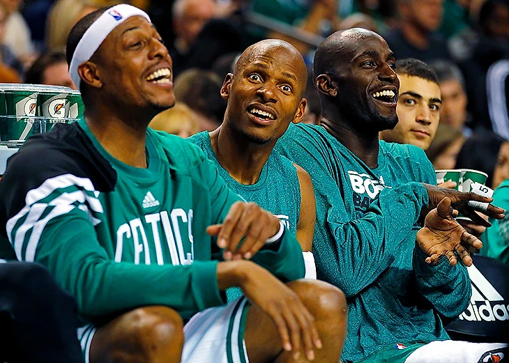 Во-вторых, Рэй почти везде пытается противопоставить большое три и Рондо. Типа вот были я, Пирс и Гарнетт и говнюк Рондо. Хотя по заявлению всех сторон именно Рэй игнорировал общие мероприятия и держался особняком. Что подтверждается косвенно и тем фактом, что Рондо, Гарнетт и Пирс продолжают отлично общаться.