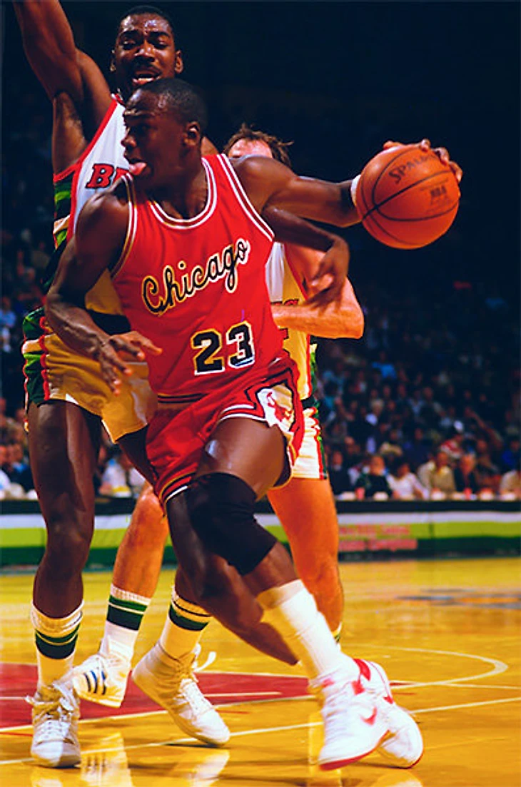 Джордан первым смог испытать сюрреалистичное ощущение: он выходил на площадку против парней, которые играли в его именных кроссовках. И первым сформулировал бессмертное правило: «Если ты играешь в обуви с моим именем, то тебе не дано права открывать рот» (было сказано Кендаллу Гиллу).