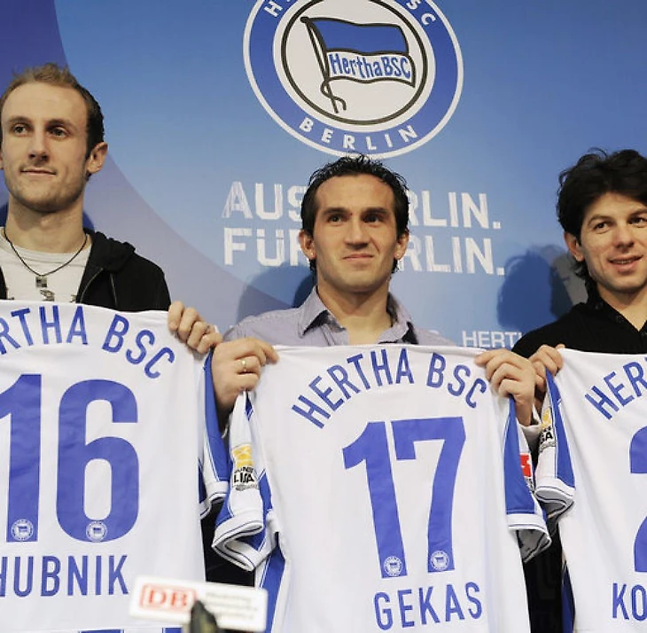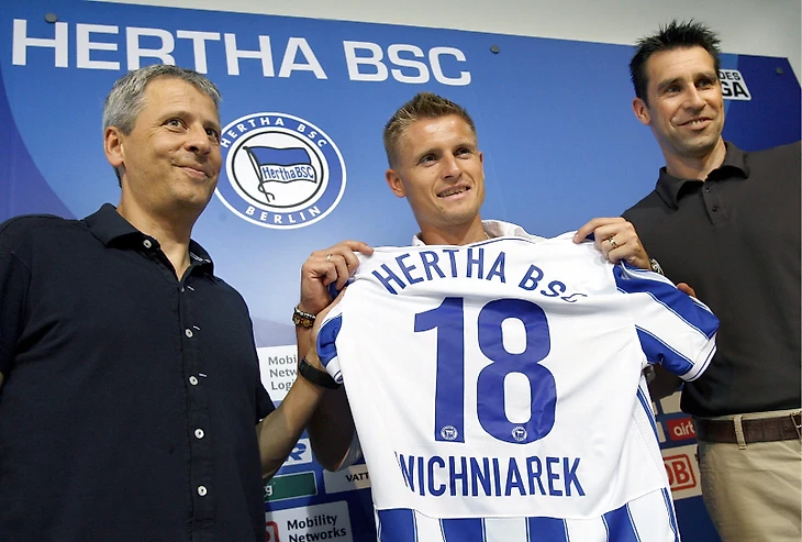 В январе 2010-го еще не опытный спортдир «Герты» удивил всех тройной презентацией футболистов.
