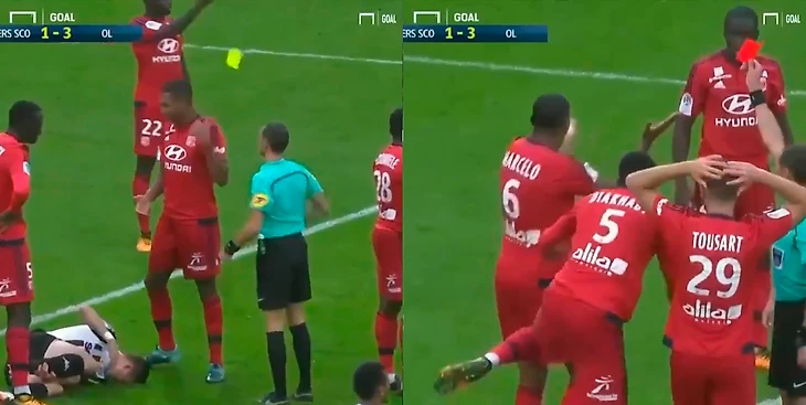 Защитник «Лиона» Марсело сфолил на игроке «Анжера» возле штрафной и получил желтую. Когда футболист увидел перед собой карточку, он отмахнулся и пошел в сторону от судьи. Так вышло, что Марсело и арбитр стояли рядом, и игрок, когда отмахивался, случайно выбил желтую карточку из руки рефери. Судье это не понравилось, поэтому он достал для футболиста красную. Это была 50-я минута, счет 3:1 пользу «Лиона». Игра завершилась ничьей 3:3.