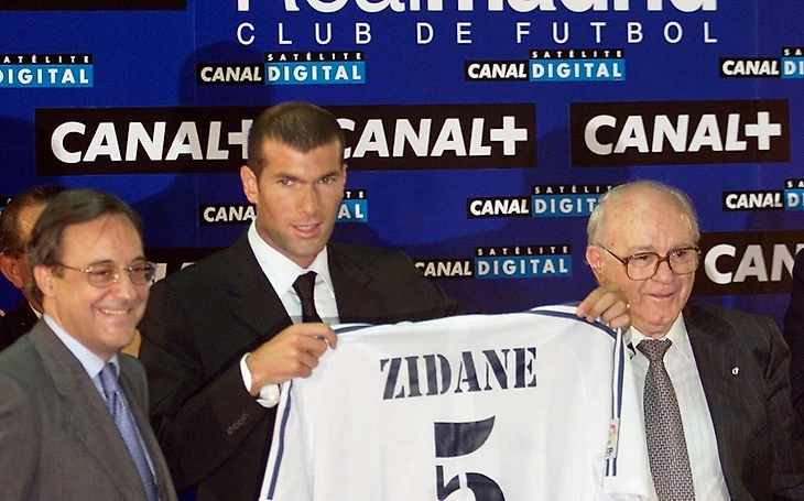 Летом 2001 года за рекордные на тот момент 75 миллионов евро Зидан перешел в «Реал» (Мадрид). Адаптация к новой стране и футболу для Зидана проходила тяжело, он долго находился в поиске своей привычной игры, но при этом забивал. После первых туров своего дебютного сезона француз числился в лидерах среди бомбардиров Примеры, но яркой игры при этом не демонстрировал ни он, ни команда. Тренеру команды Висенте Дель Боске пришлось изменить привычную схему «Реала» и найти в ней оптимальное место для Зидана.