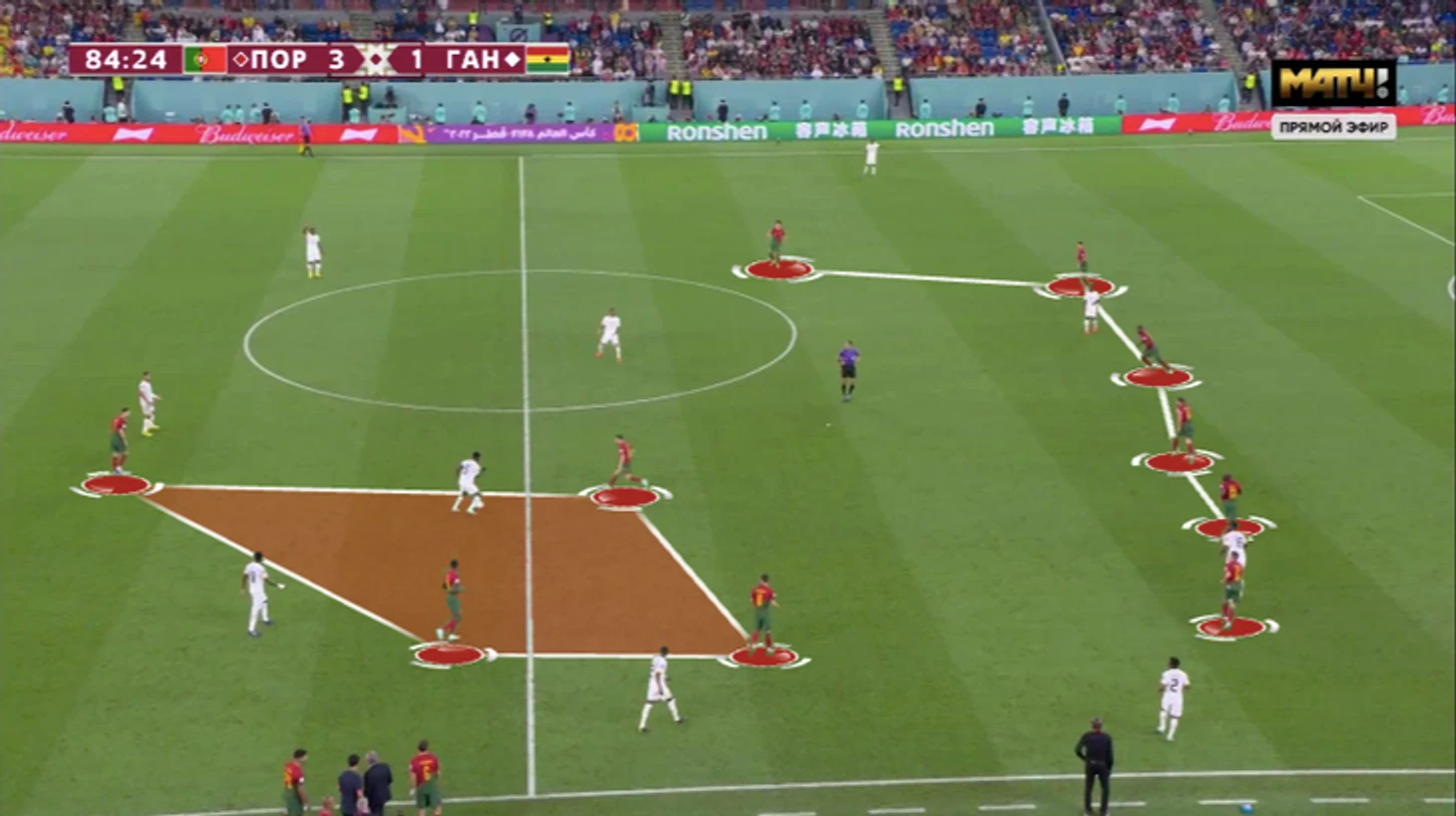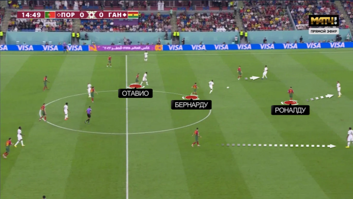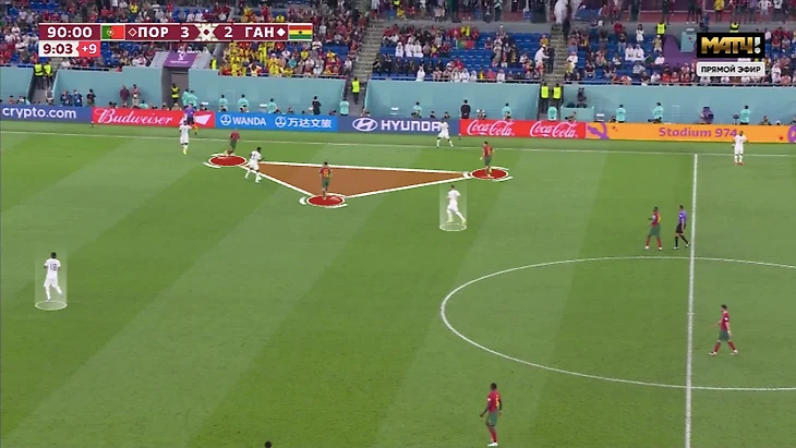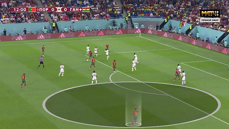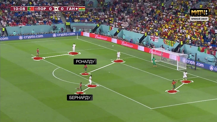Против Ганы у Криштиану было относительно простое задание. Вместо метаний между защитниками и опорником (требования Рангника) была четкая игра по конкретному сопернику. Помогло наложение схем: тройку центральных защитников Ганы могла давить атакующая тройка Португалии (Феликс – Криштиану – Бруну), пару опорников – Бернарду и Отавио.
