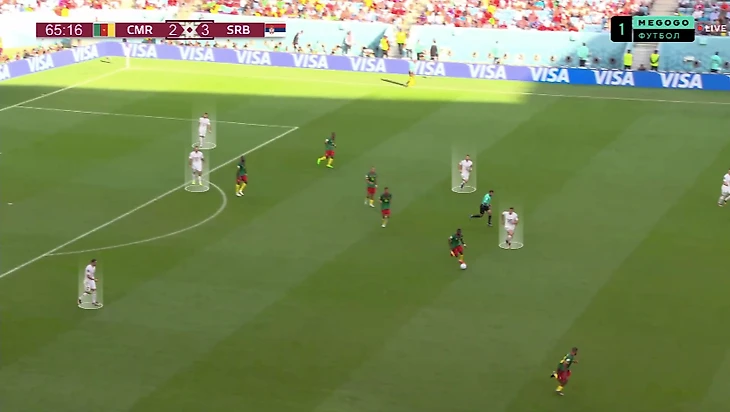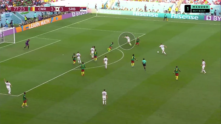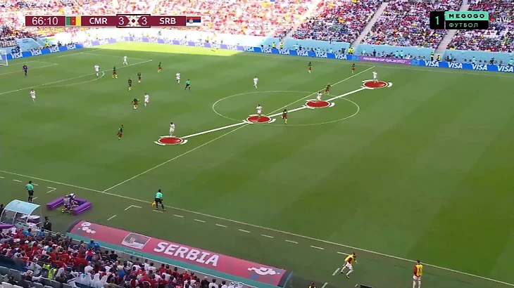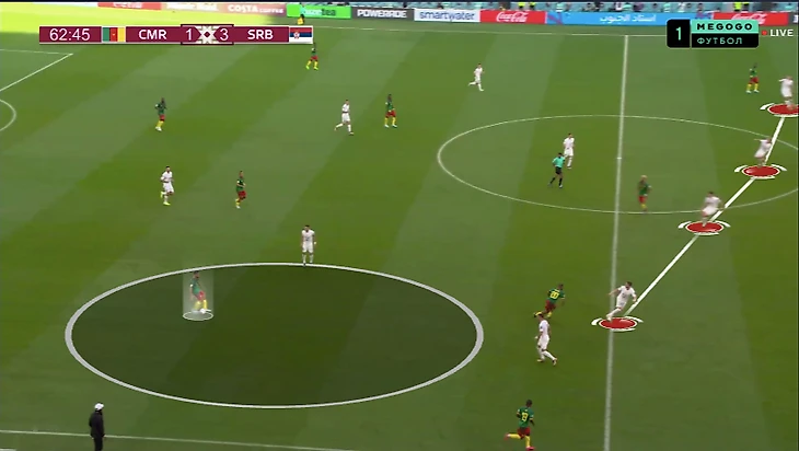 Вторая – офсайдная ловушка, которую сербы пытались устроить у центра поля, причем без давления на мяч, когда камерунцы вылетали в контратаки: