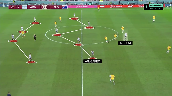Как все это проявляется на чемпионате мира? Альварес присаживается в оборонительную схему Аргентины и оставляет Месси отдыхать впереди. Может быть десяткой, которая играет по опорнику соперника:
