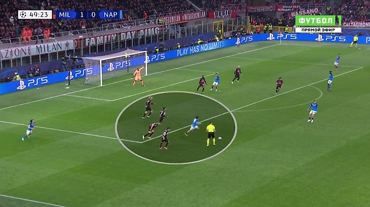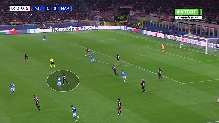 Помимо того, что «Милан» получил моменты в контратаках, хозяева еще и нагнали страха на гостей. Ди Лоренцо начал реже подключаться по своему правому флангу. Во втором тайме «Наполи» вообще перебросил игру на фланг Хвичи.