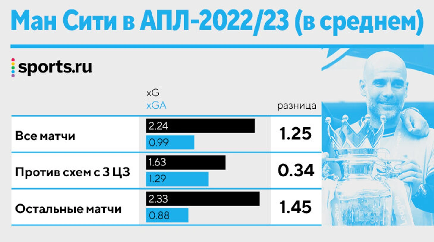 Фирменные для Пепа эксперименты тоже сыграли свою роль, но план Индзаги отлично обнажил проблемы, которые встречаются у «Сити» против соперников с пятью защитниками. С ними команда Гвардиолы набирает меньше очков и просто-напросто хуже играет. Вот отличная табличка, подсвечивающая тренд: