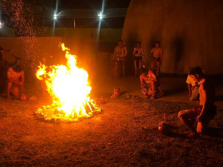 Небольшое поселение в мексиканской провинции накрывает ночь. Группа зевак стягивается у концертного зала под открытым небом. Рядом со сценой горит костёр. На улице уже потемнело, и это единственный источник света. Воздух наполнен благовониями. Языки пламени освещают разукрашенные лица девушек и парней, стоящих вокруг костра. У всех серьёзное выражение лица. Вокруг огня ходит мужчина с голым раскрашенным торсом и кожаной набедренной повязкой-юбкой, свисающей до земли. Он останавливается и произносит: